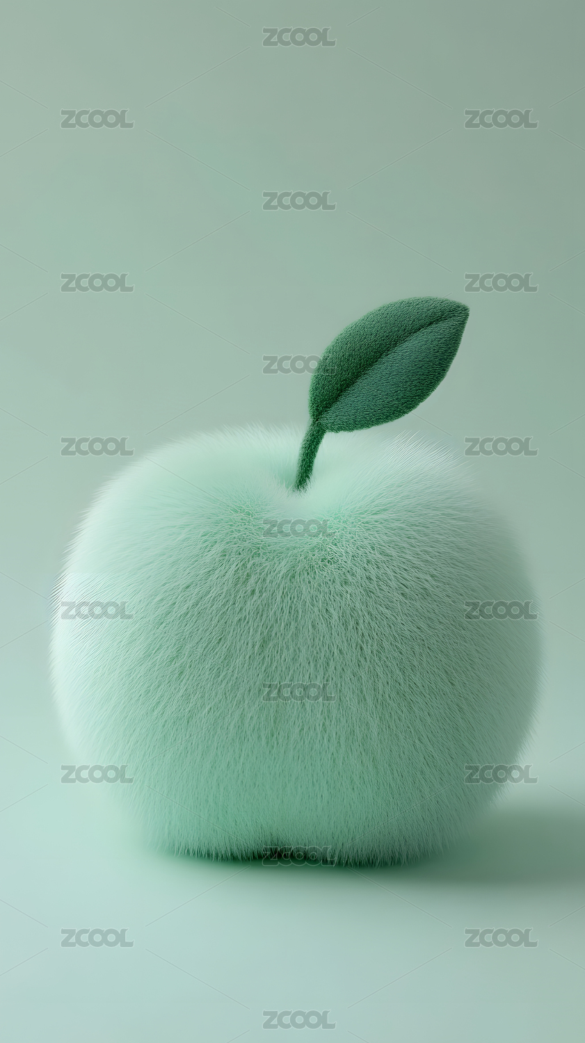 桌上一个糖果色羊毛毡毛绒苹果3D卡通插画