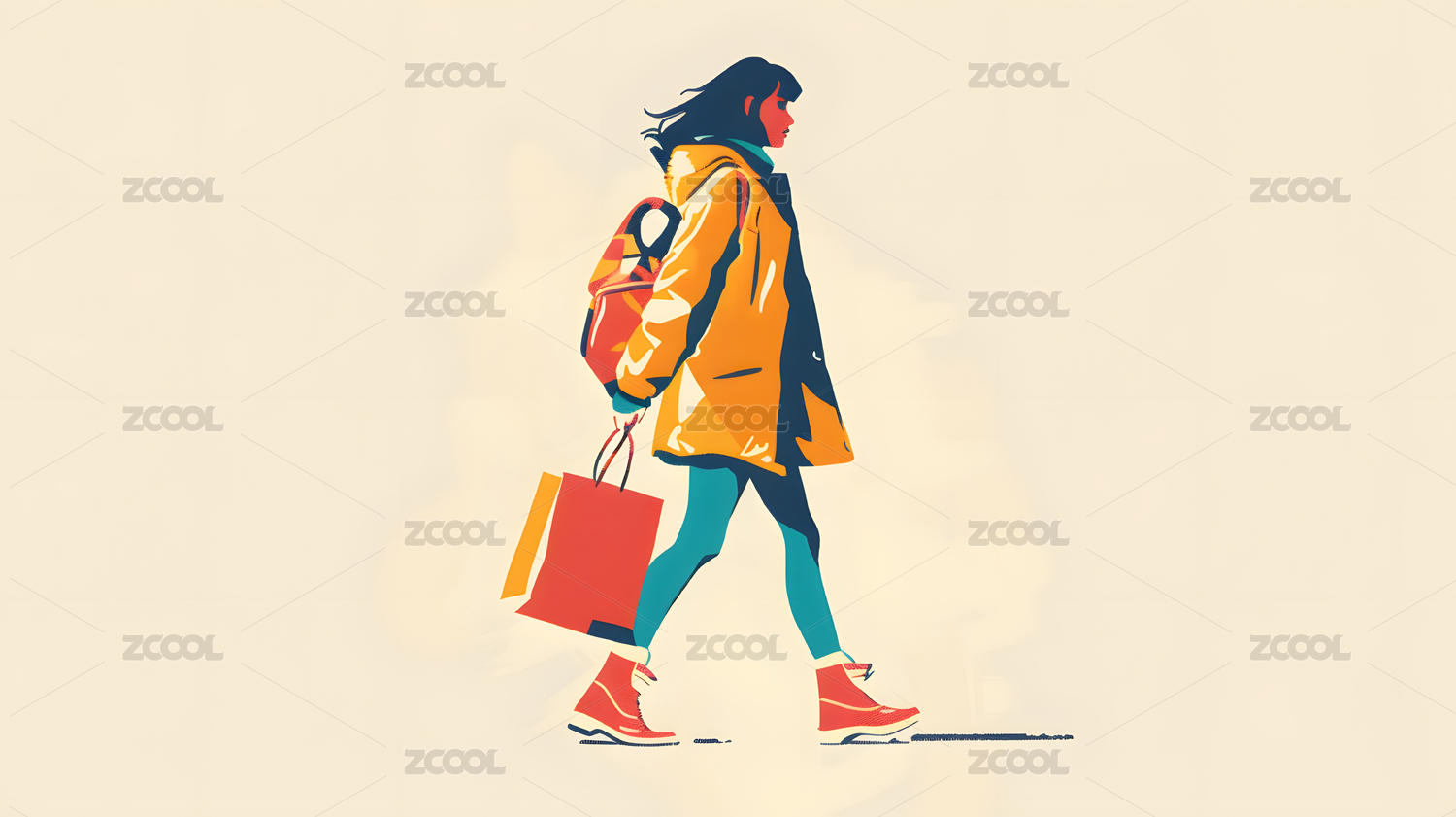 女生购物手绘插画