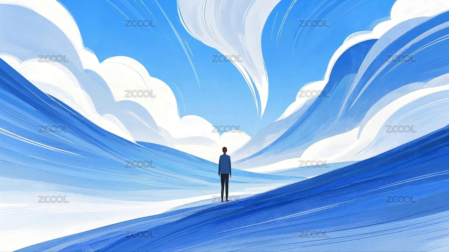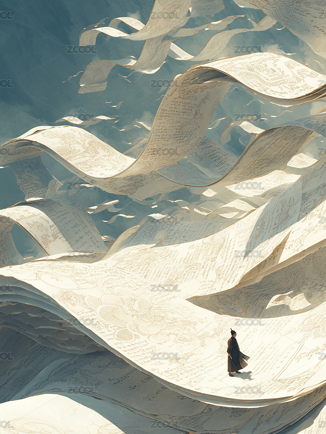 学海无涯,攀登,汉服,人,古风,书法,蓝色,黄色,明暗,卷轴