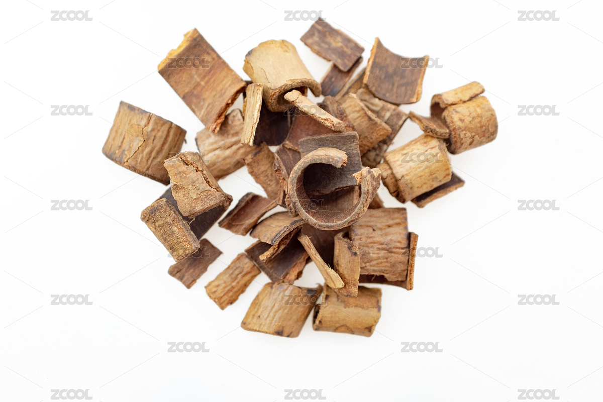 白色背景上的中药 厚朴