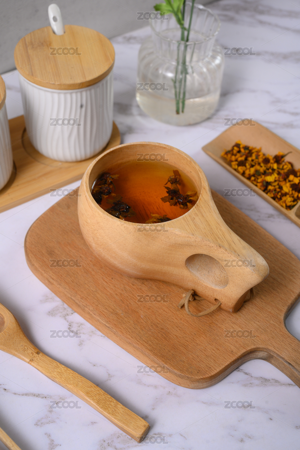 桌面上的杯子里的甘甜可口的赶黄草茶