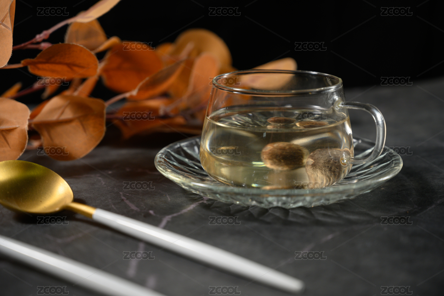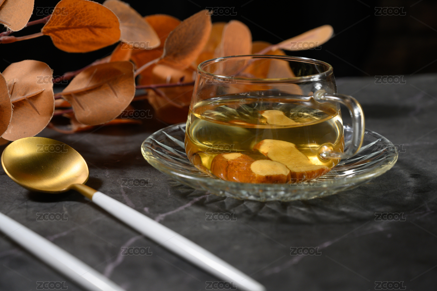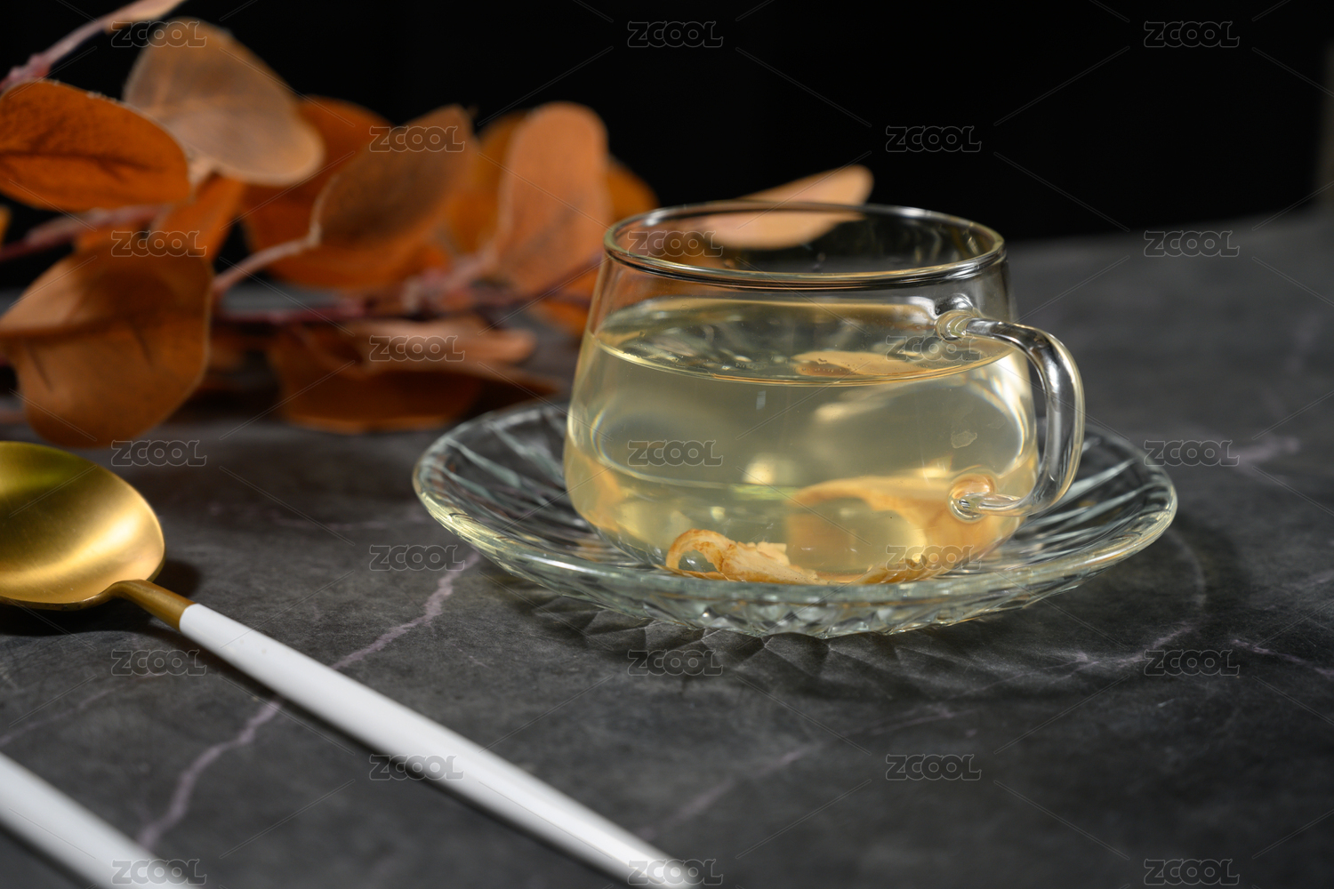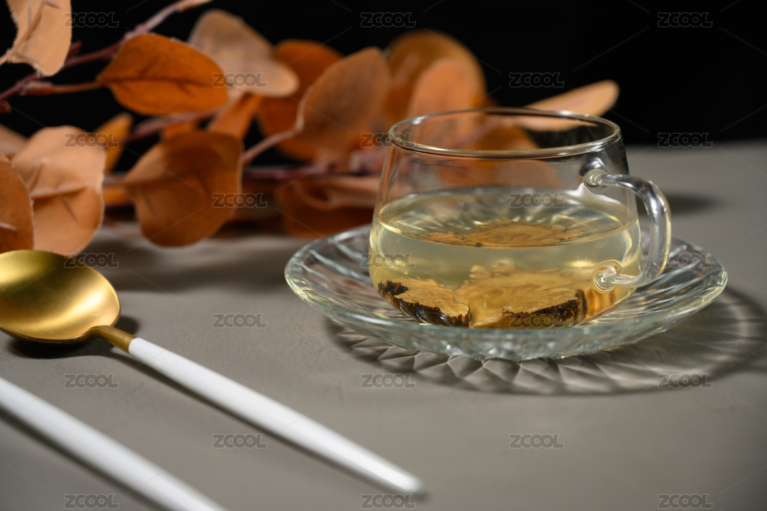 桌面上的杯子里的的甘甜可口的西洋参茶