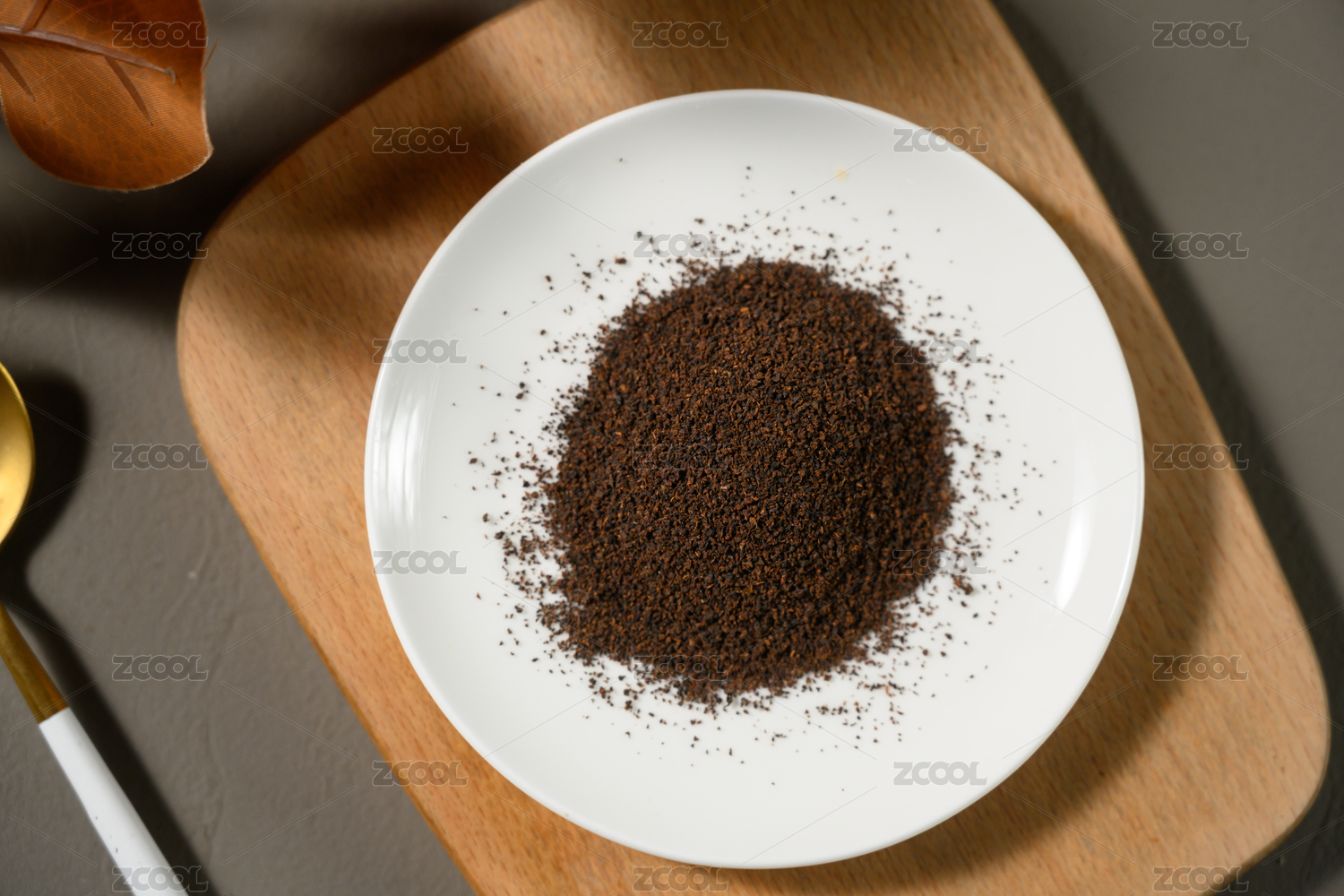 桌面上的盘子里的香气四溢的锡兰红茶茶叶粉