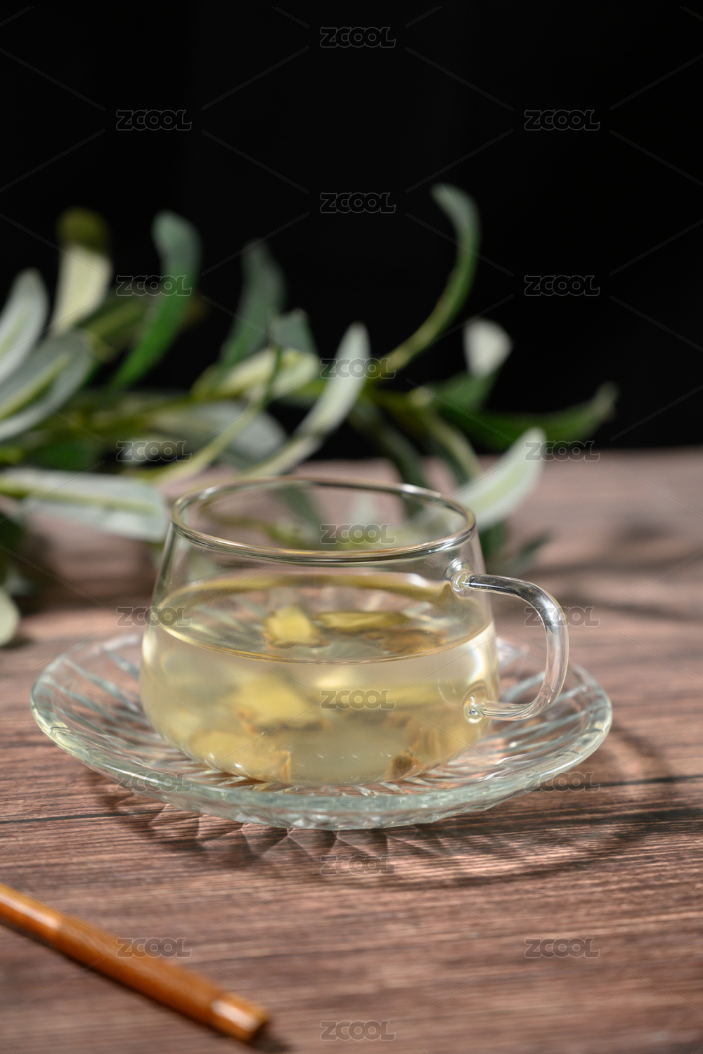 桌面上的杯子里的的甘甜可口的西洋参茶