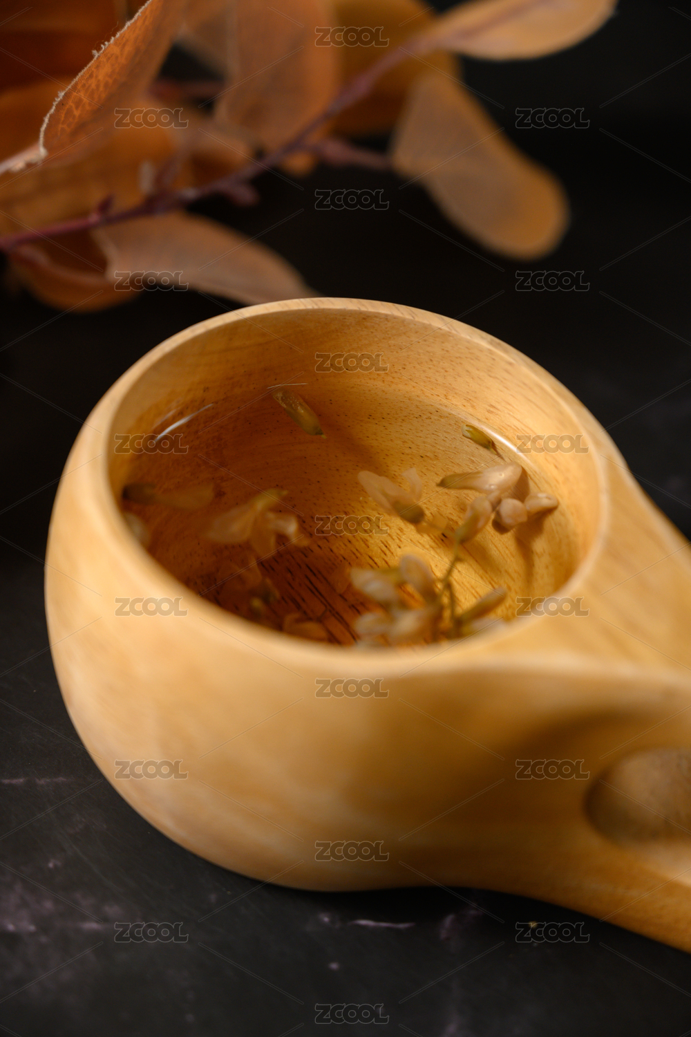 桌面上的杯子里的甘甜可口的秦皮茶