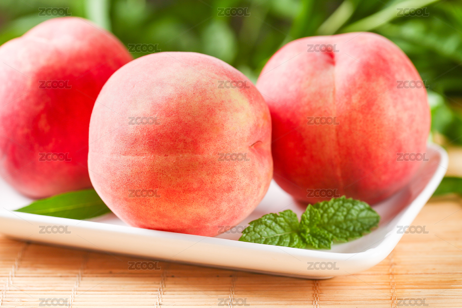 竹垫子上放着春雪水蜜桃