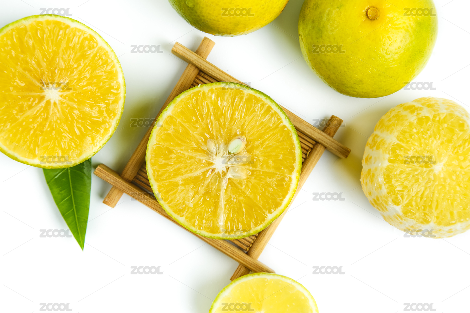 白底上放着一筐皇帝贡柑和贡柑果肉