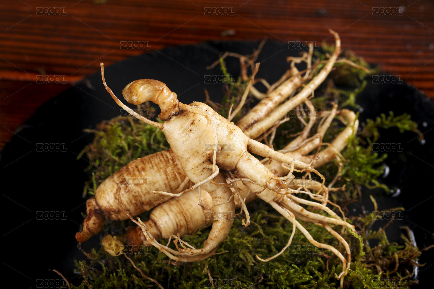 黑底上的新鲜人参