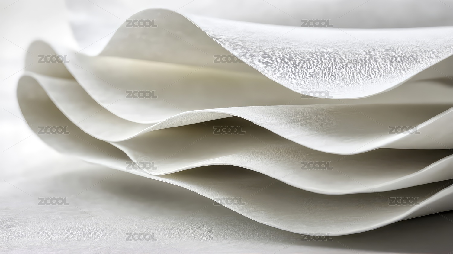 白色的纸张堆叠成波浪形 层次感强