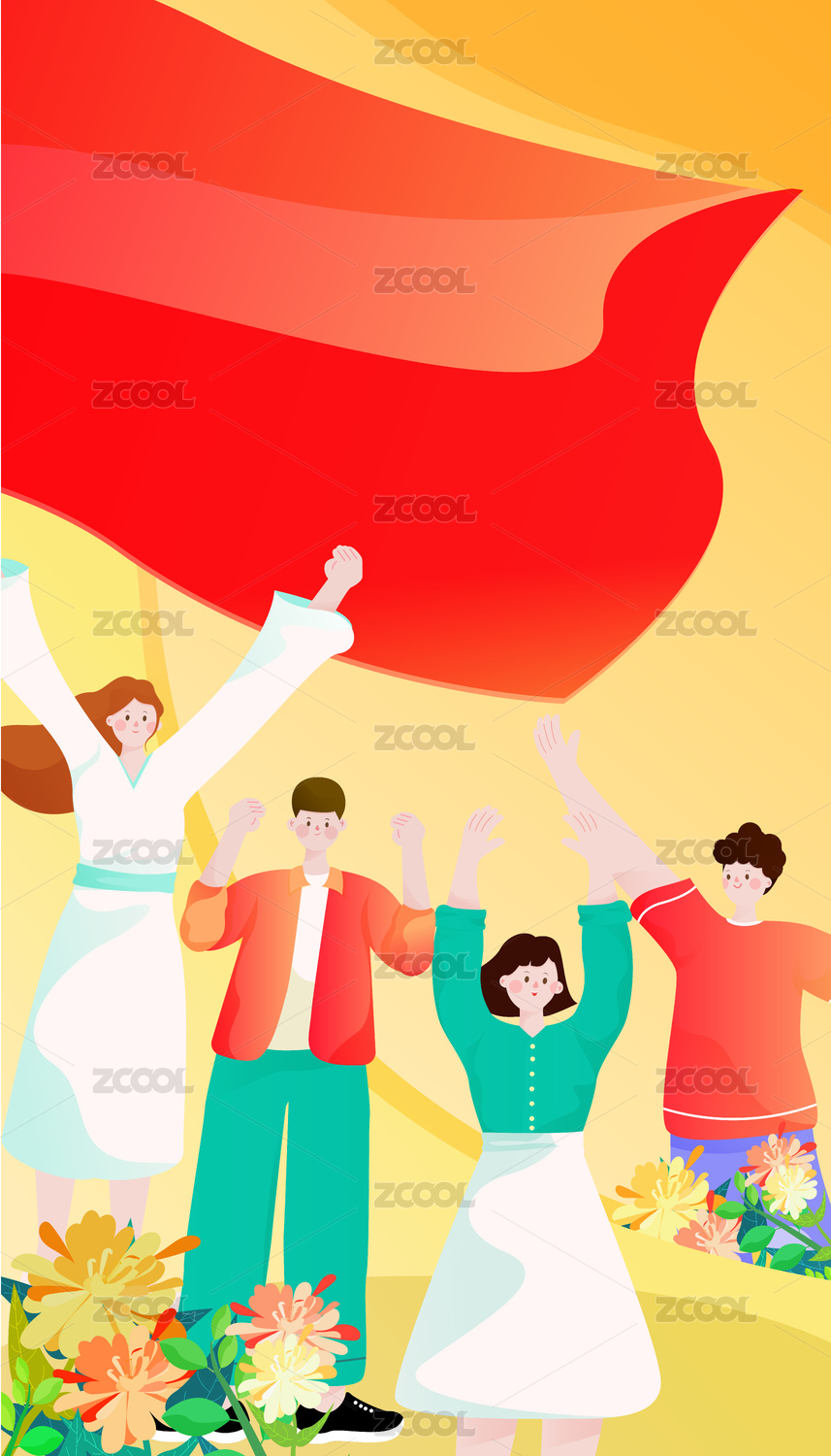 插画,粉色,暑假,男孩,旗子,小清新,可爱,欢乐,清爽,热情