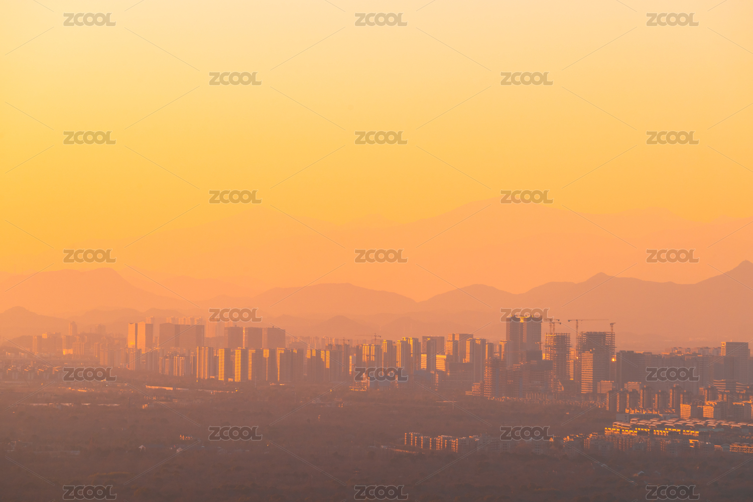 从西山俯瞰北京门头沟石景山傍晚蓝调时刻