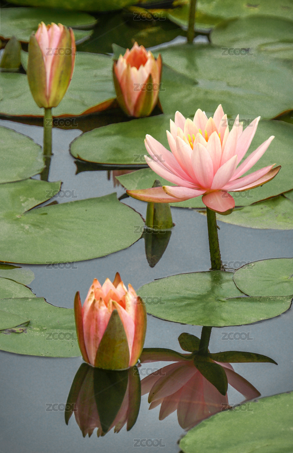 夏日早晨盛开的睡莲花