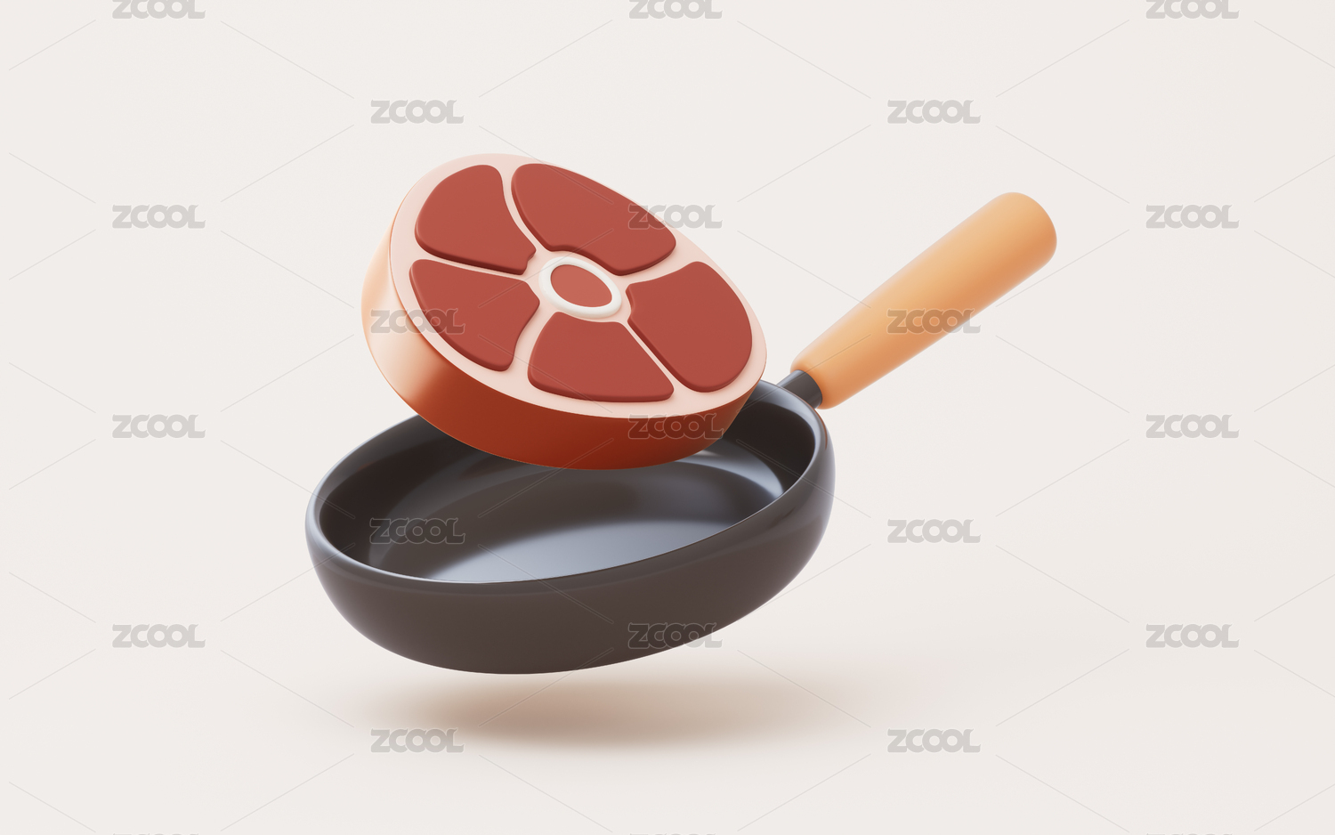 3D,插画,材料,健康,卡通,新鲜,蔬菜,食物,烧烤,牛肉