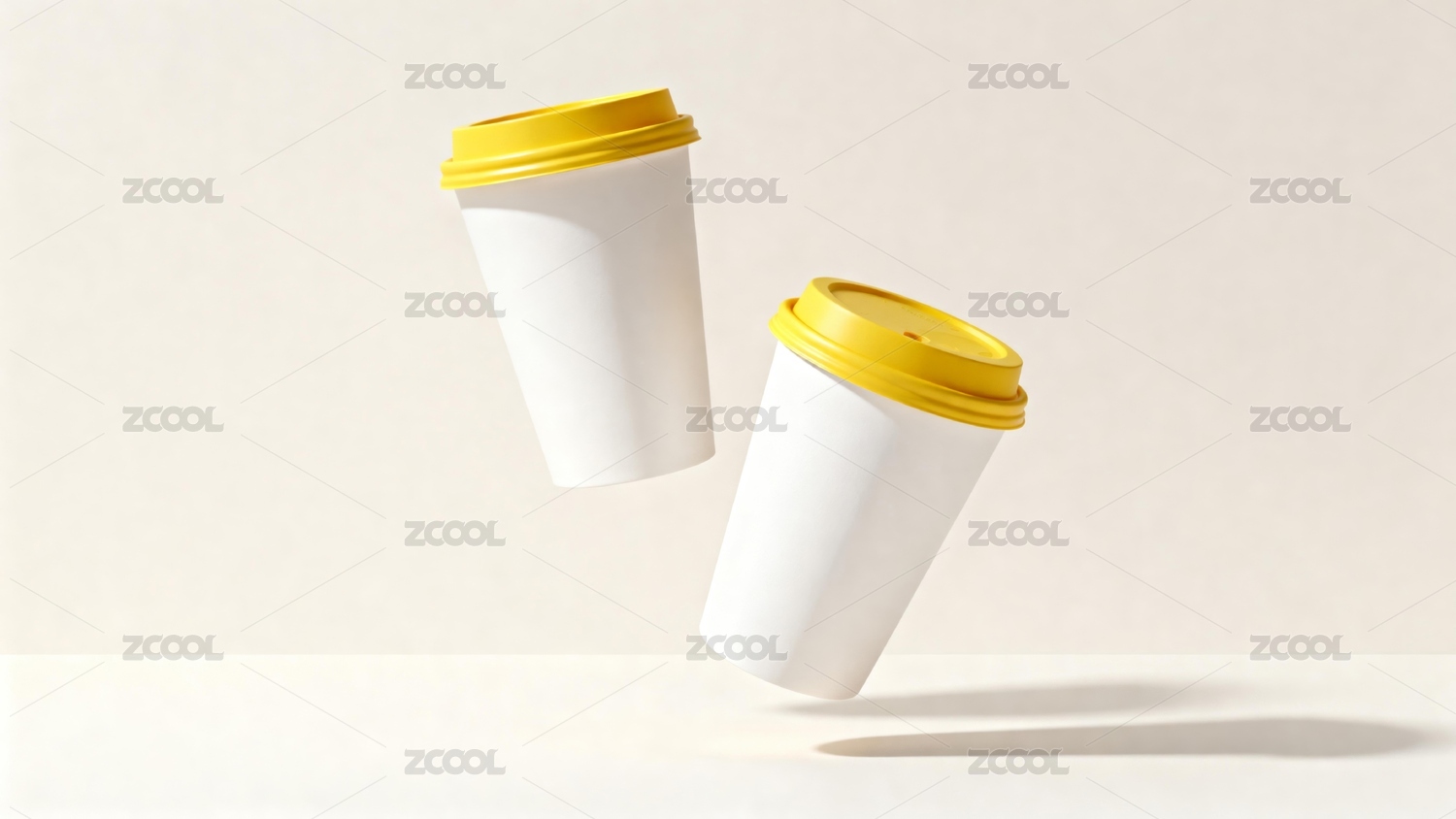 卡通咖啡奶茶和面包早餐下午茶组合3D渲染