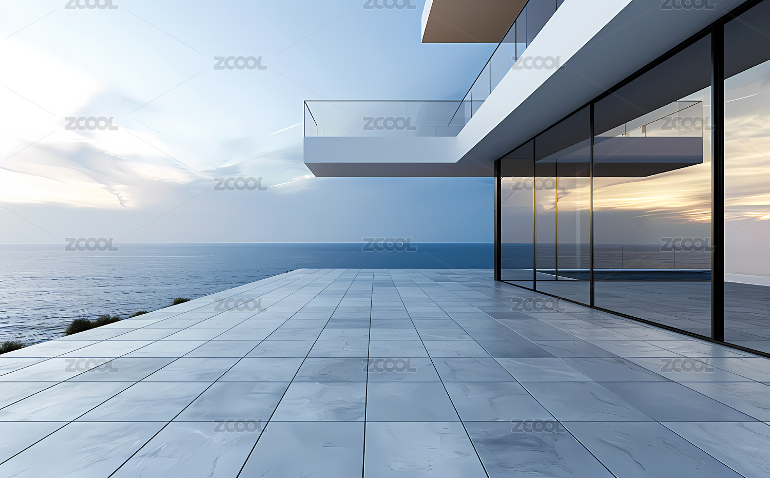 别墅,海景,滨海,现代建筑,天空,干净,明亮,海报,现代,简约