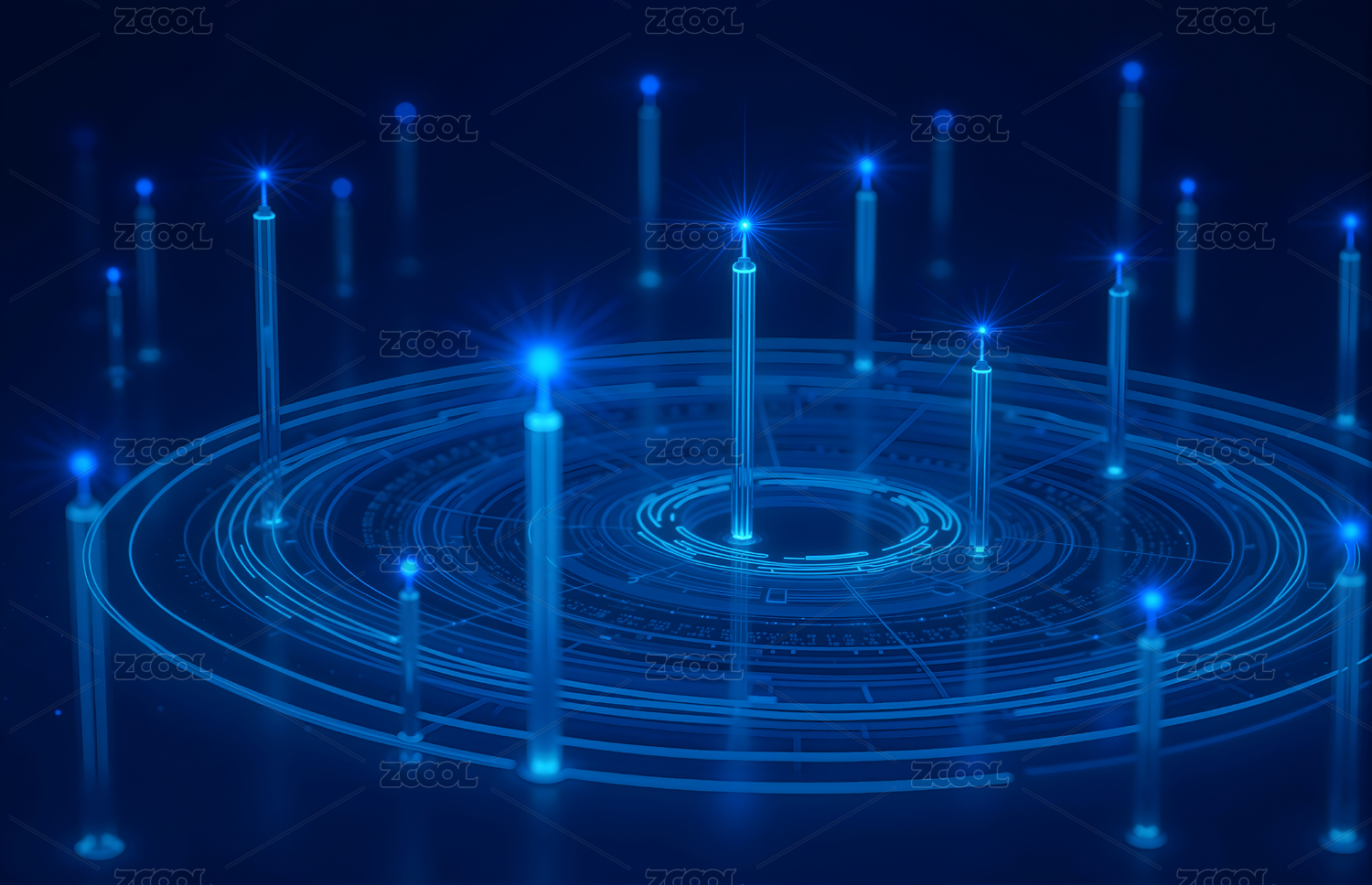 蓝色粒子线螺旋漩涡与射线互联网科技背景