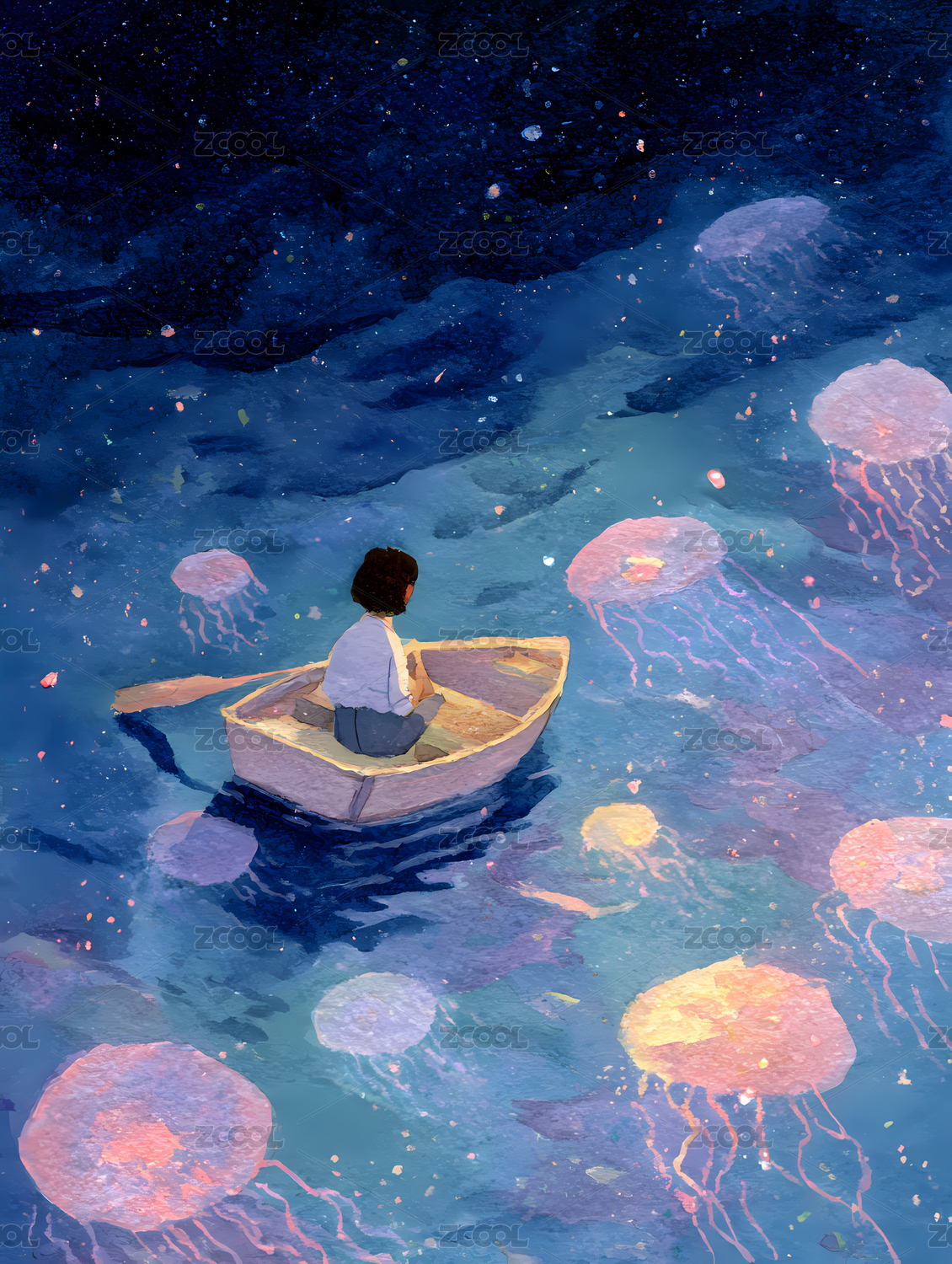 二十四节气,节气,插画,猫,立夏,撑伞,下雨,水面,相遇,夏