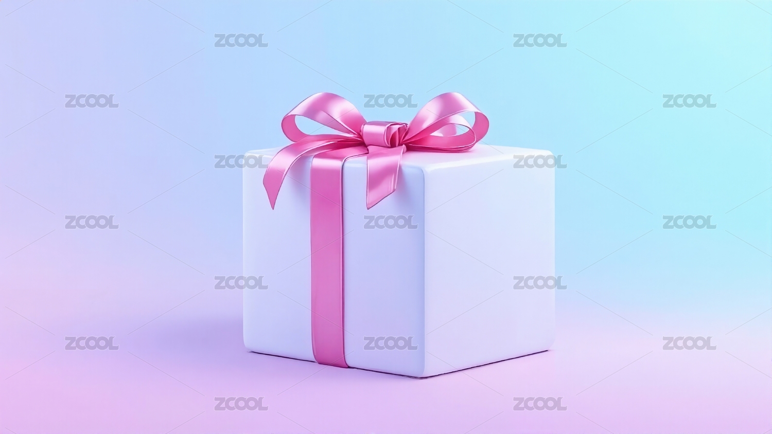 一个粉红色礼物盒子上面一个粉红色蝴蝶结图
