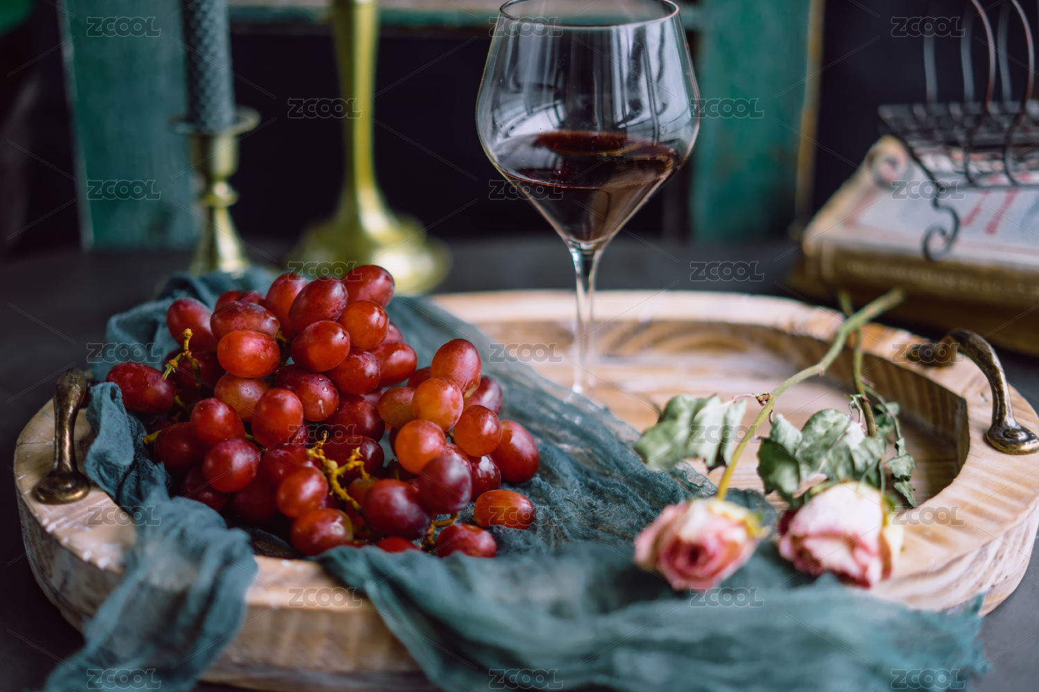 红葡萄酒和葡萄
