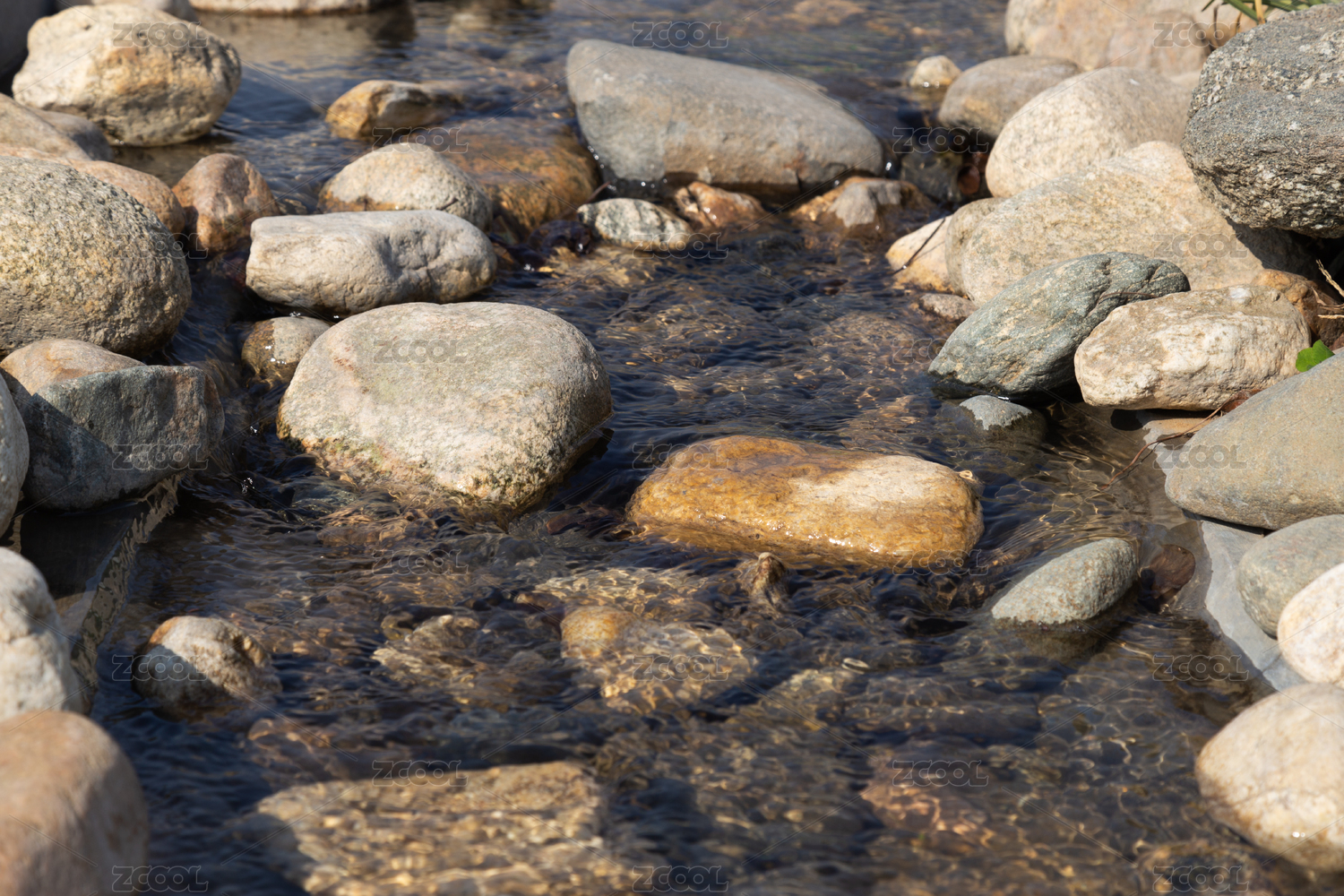 户外小溪水流散落的小石头