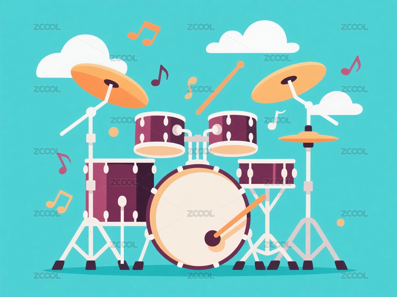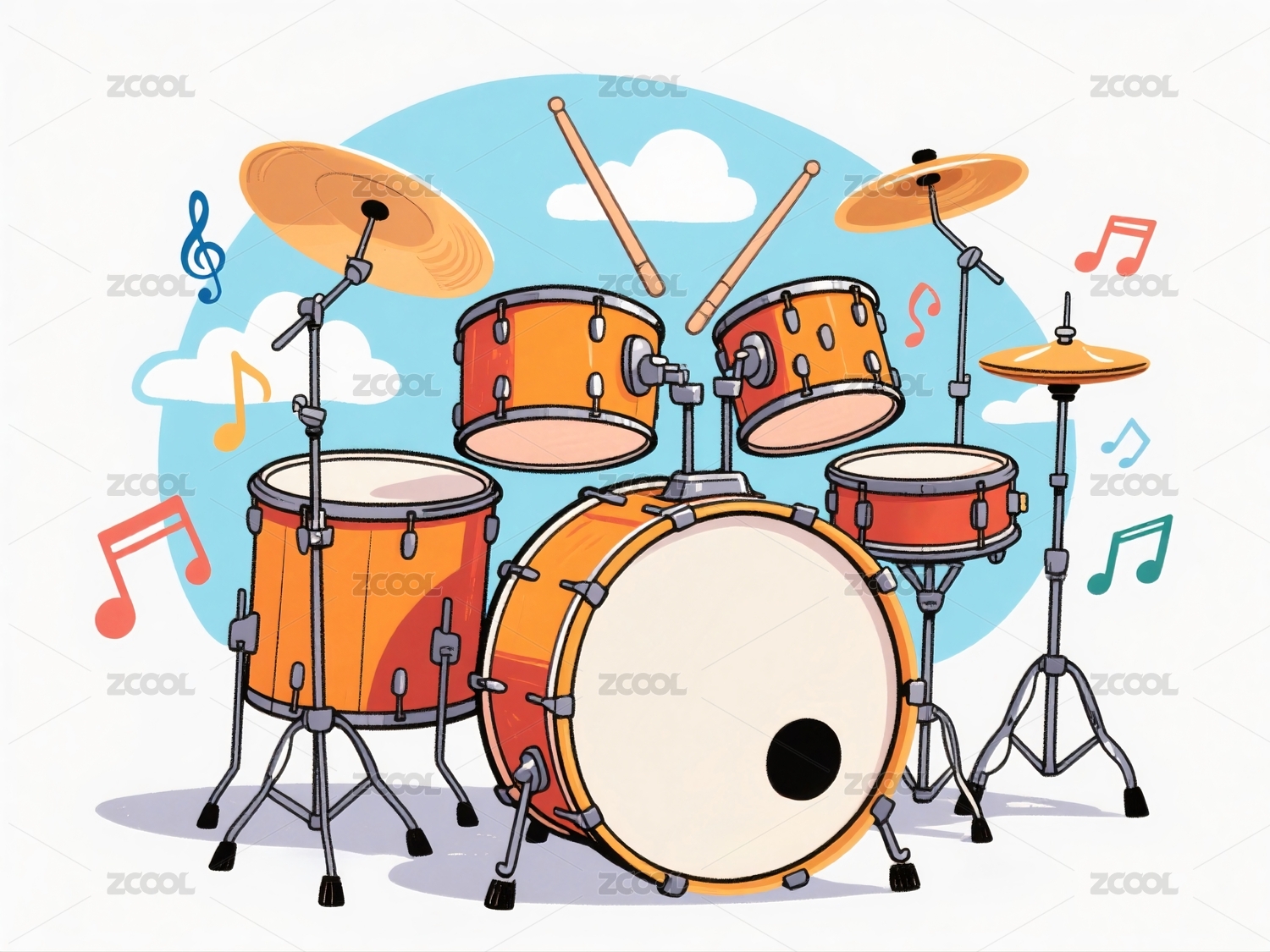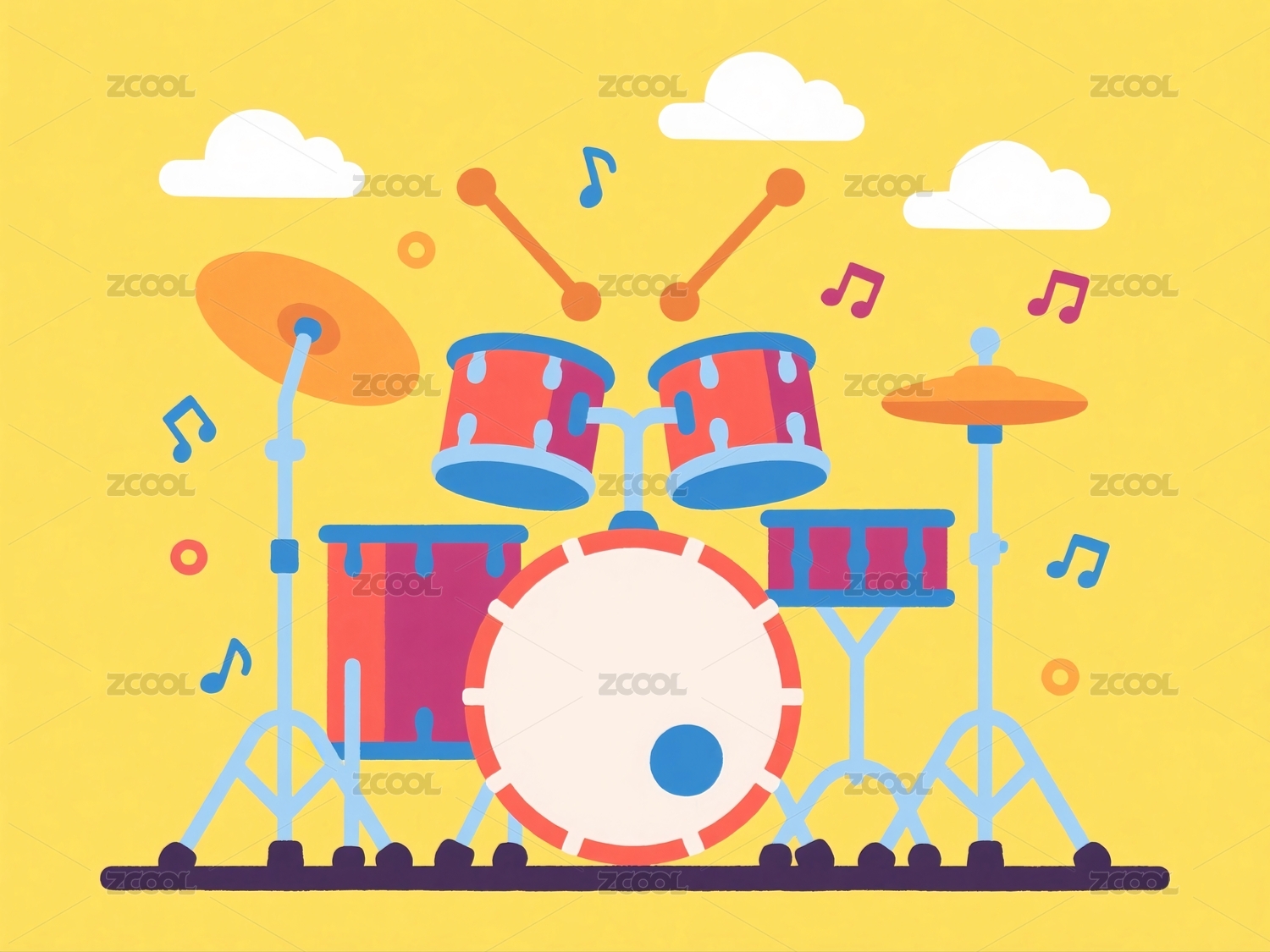 清新明亮彩色架子鼓爵士鼓手绘插画绘画