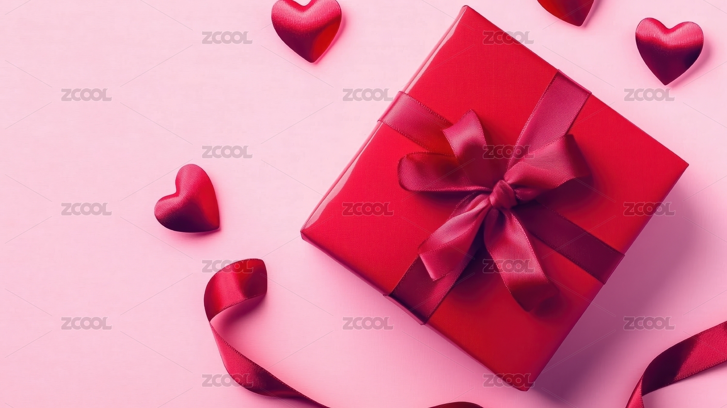 七夕节日情人节粉色玫瑰和礼物盒浪漫背景图