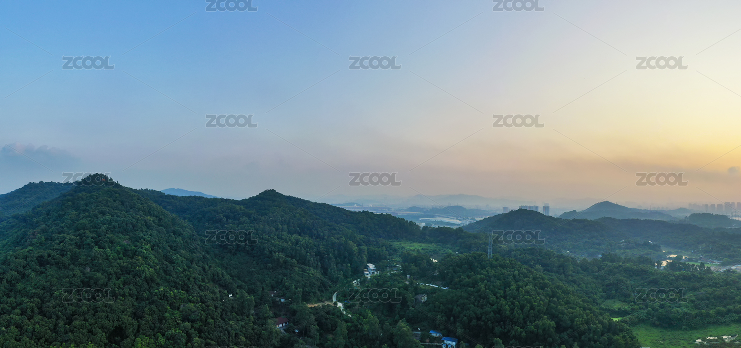 羊台山森林公园山顶远眺/黄昏下的深圳宝安区鸟瞰图