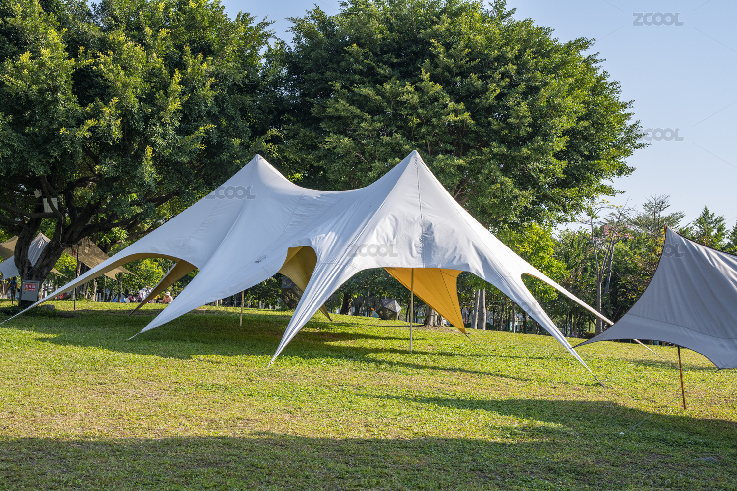 早晨,阳光,公园,草地,夏天,绿色,草坪,露营,帐篷,生活方式