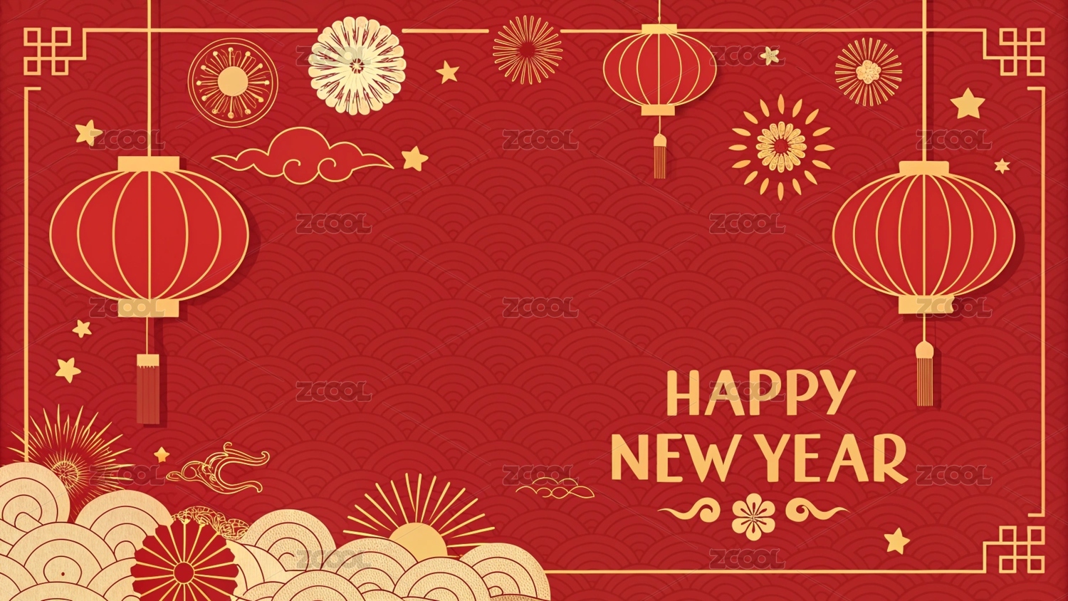 新年喜庆灯笼祥云烟花爆竹大气红色海报背景