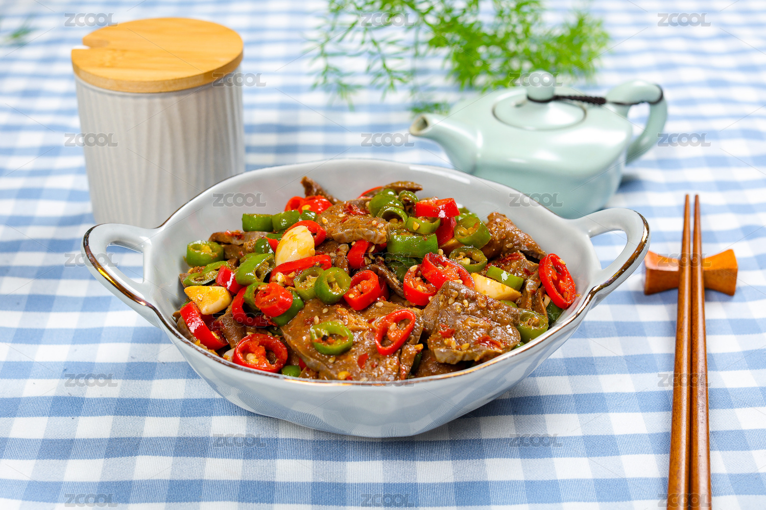 美味小菜青辣椒红辣椒腐竹炖牛肉