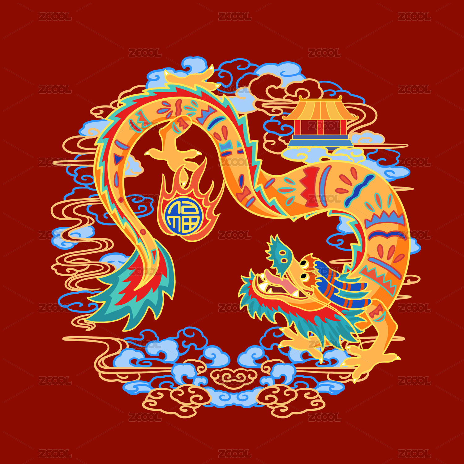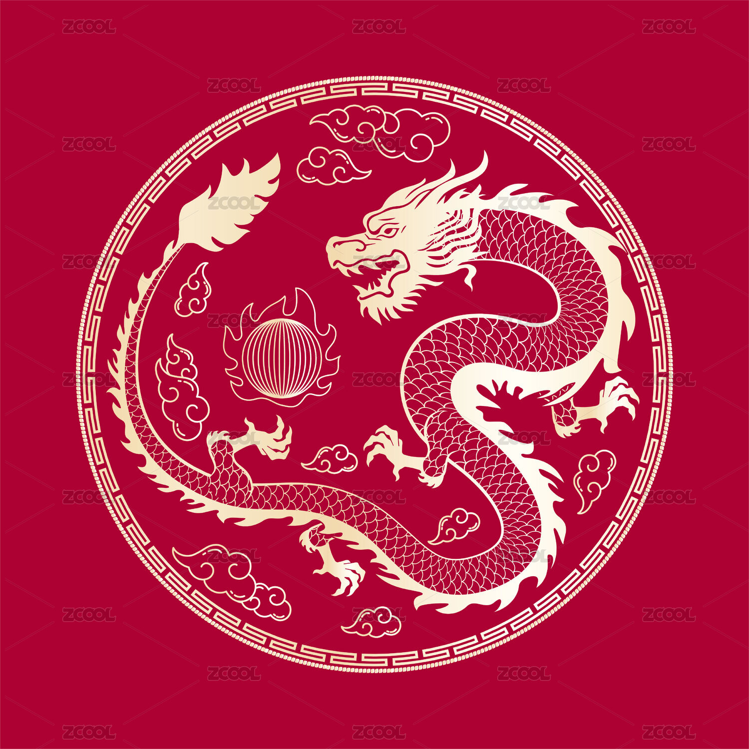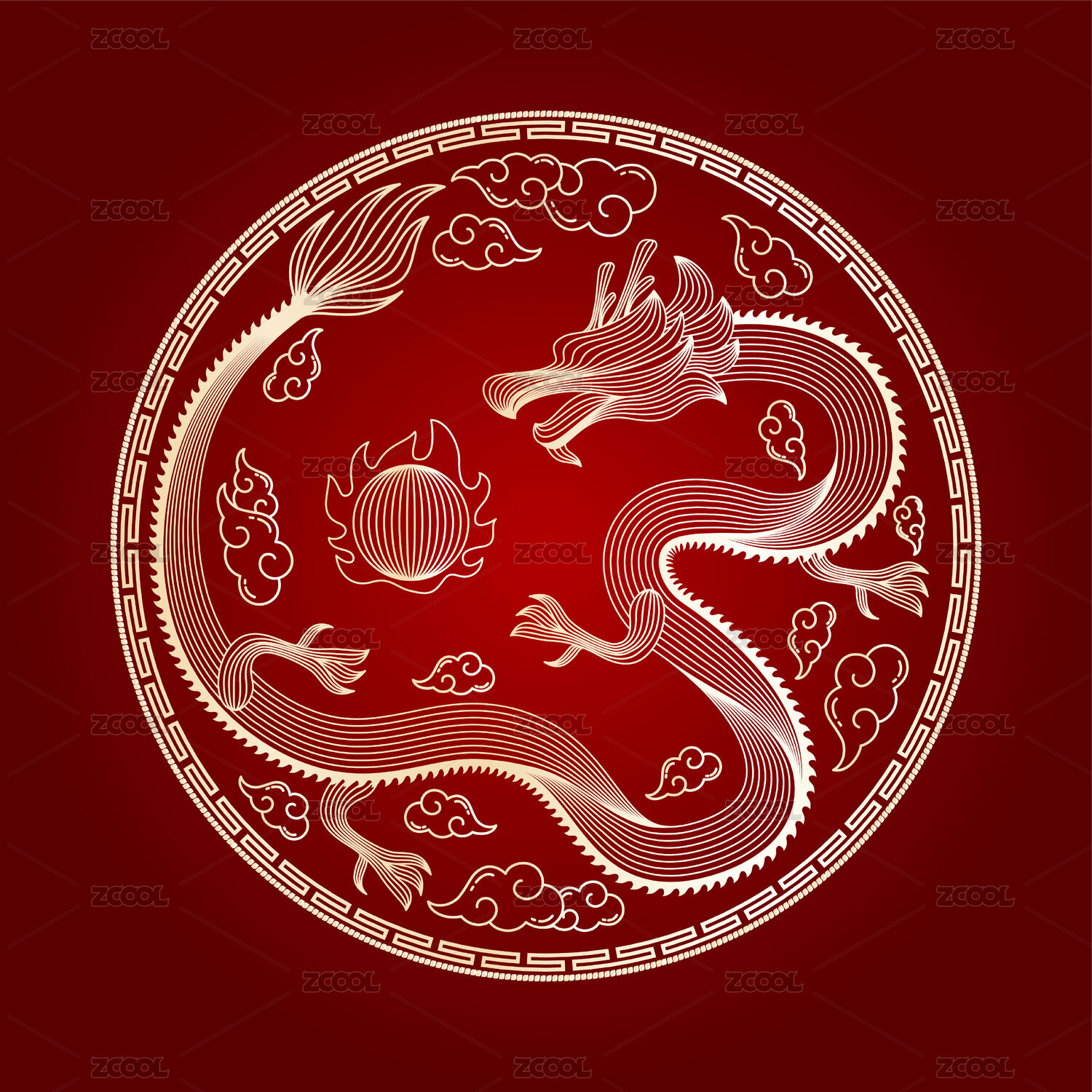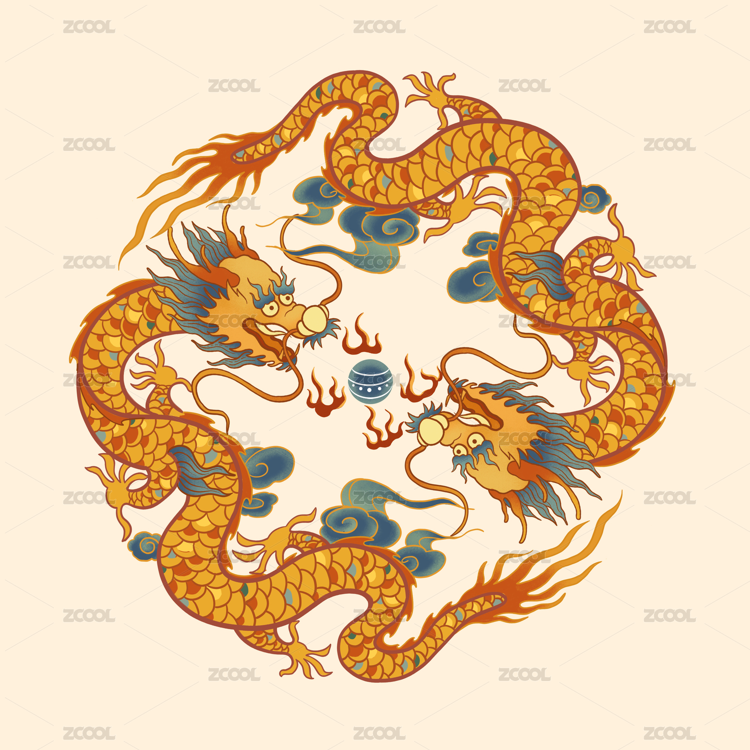 中式纹样中国龙纹饰吉祥图案双龙戏珠剪纸