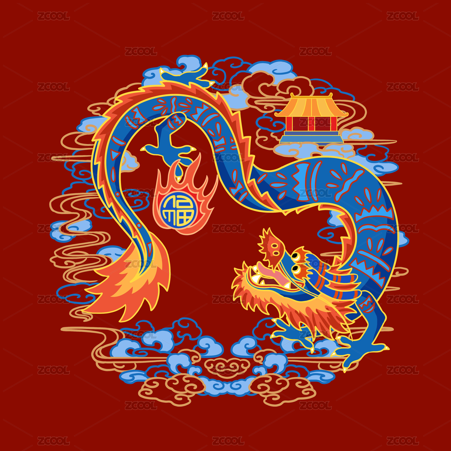 明代团龙纹样团龙花纹壁纸中国风龙袍图案