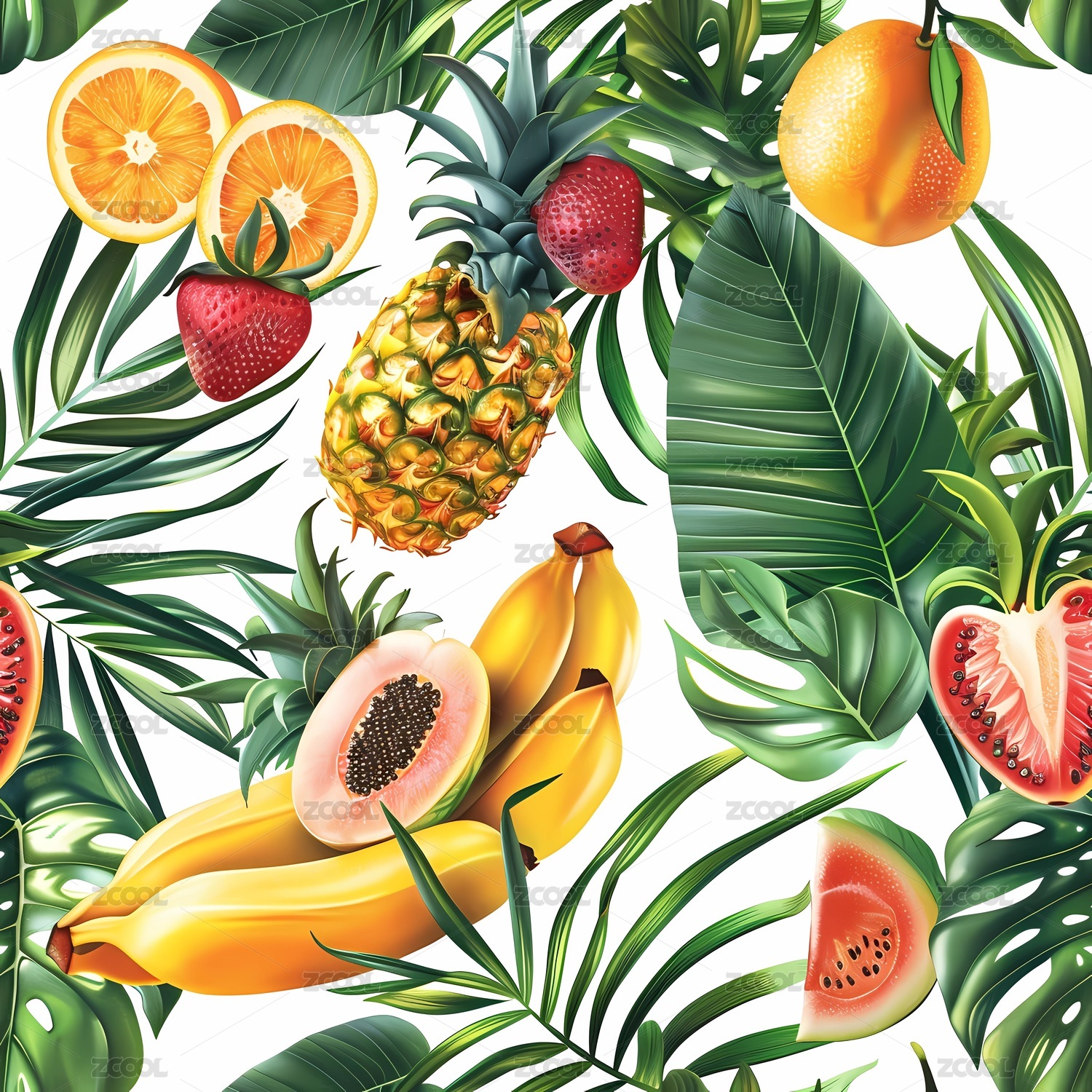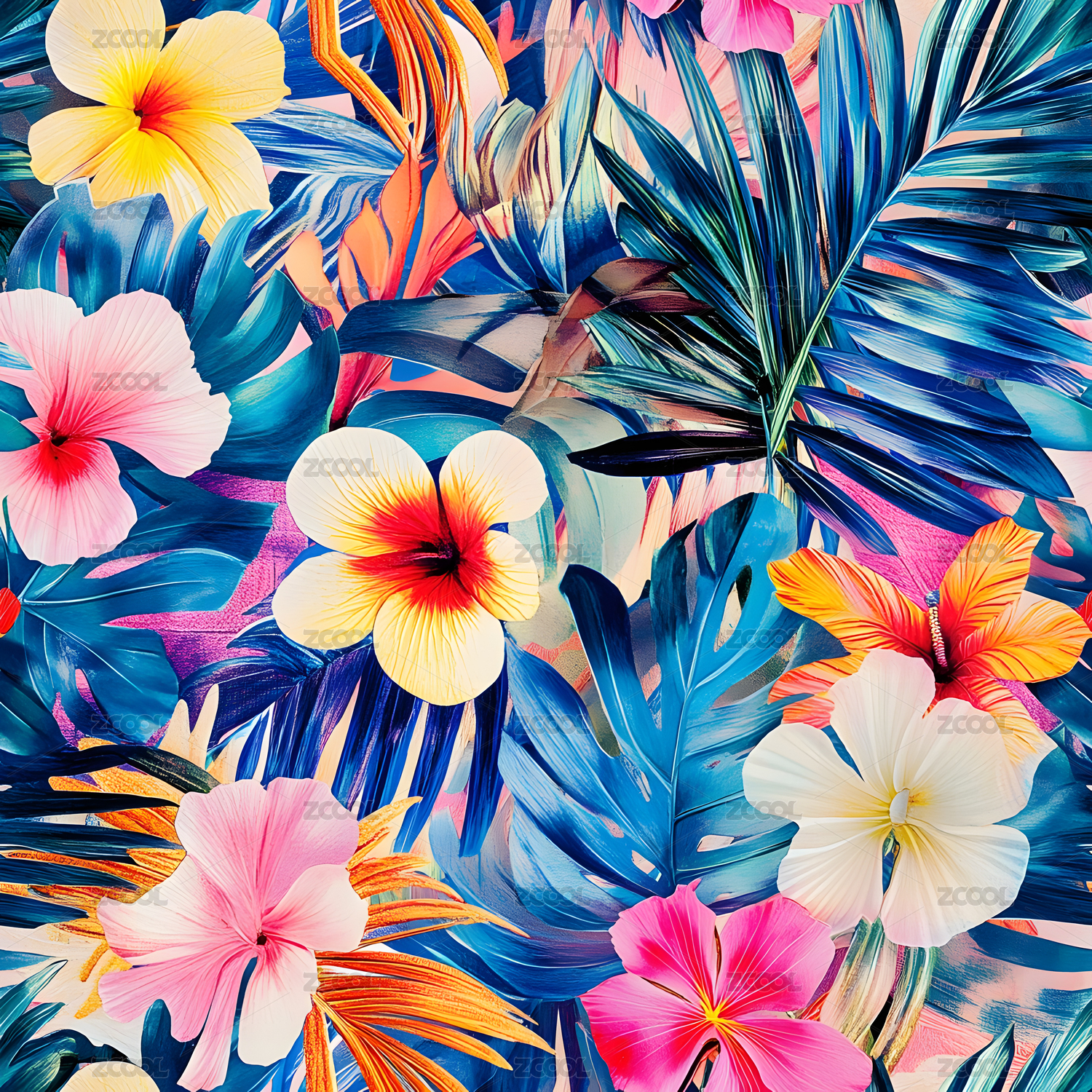 四方连续热带植物印花背景