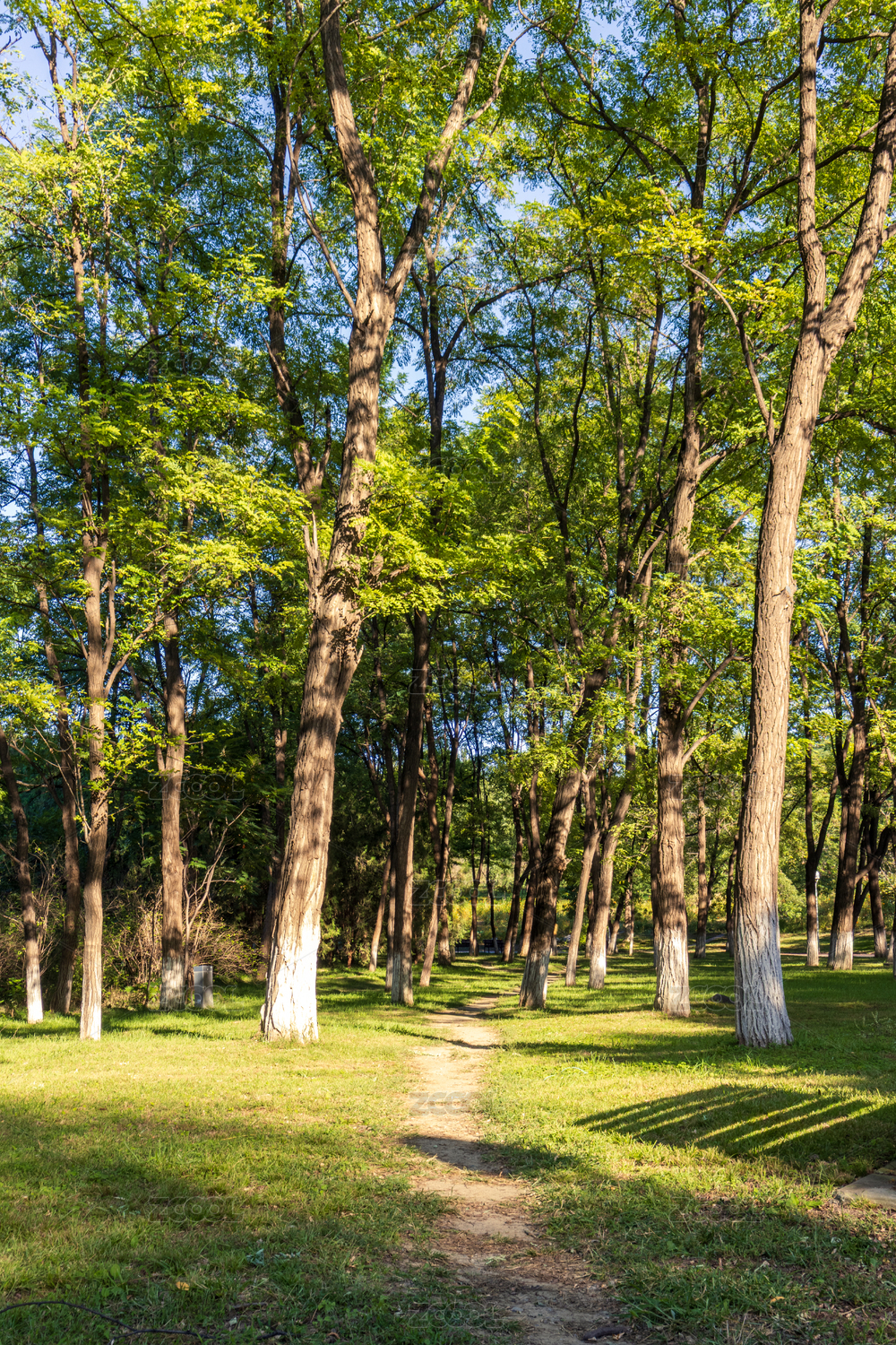 公园大树下洒满阳光的弯弯的小路