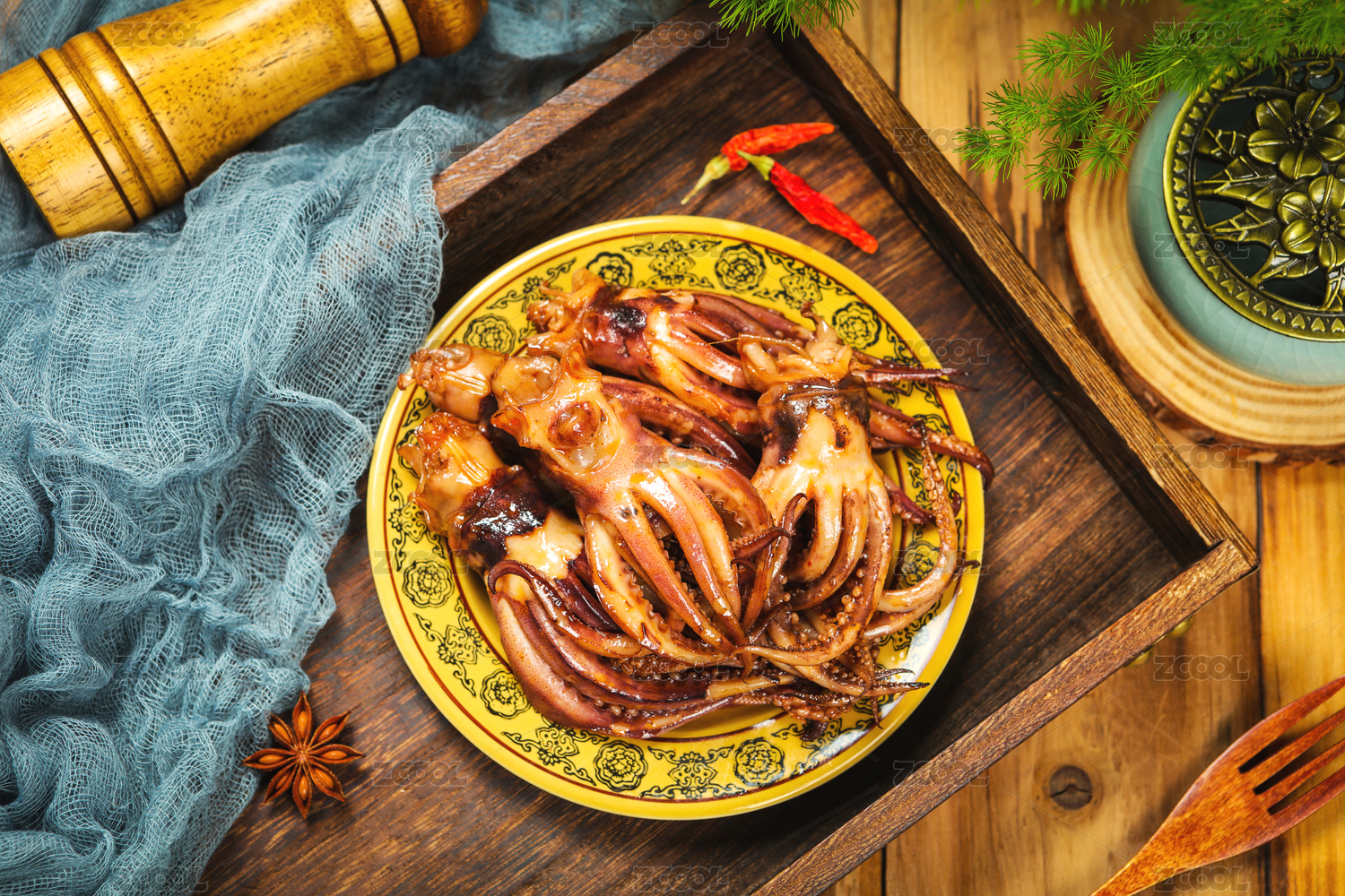 餐盘里的卤鱿鱼须