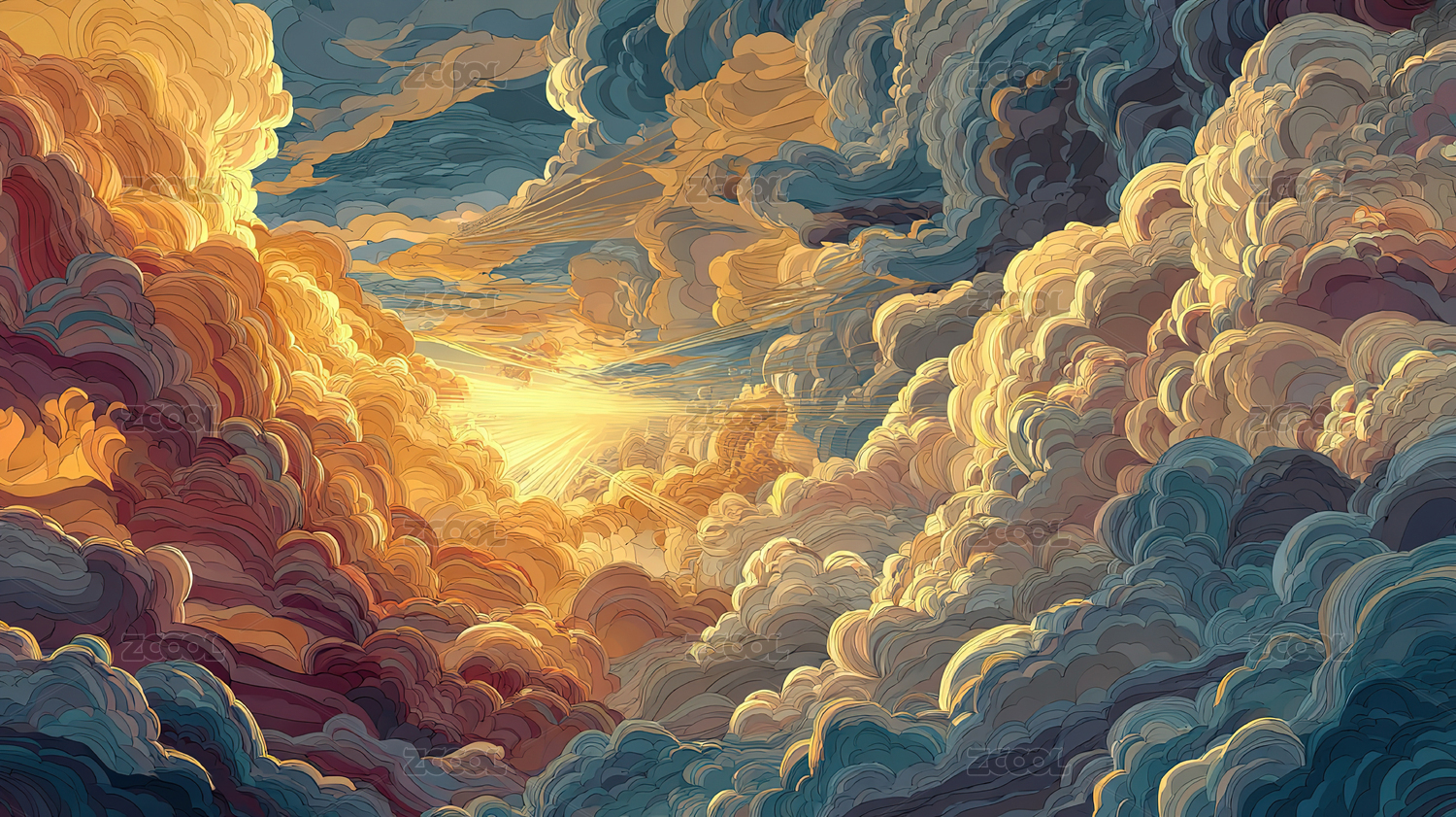 七彩祥云古风神话背景