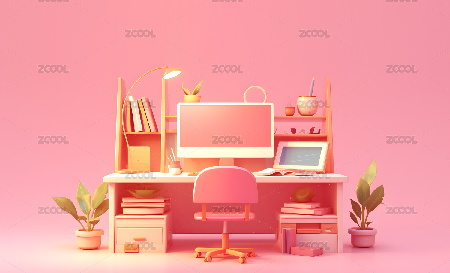 无人,商务,书桌,三维图形,插画,书,桌子,科学技术,设计,室内