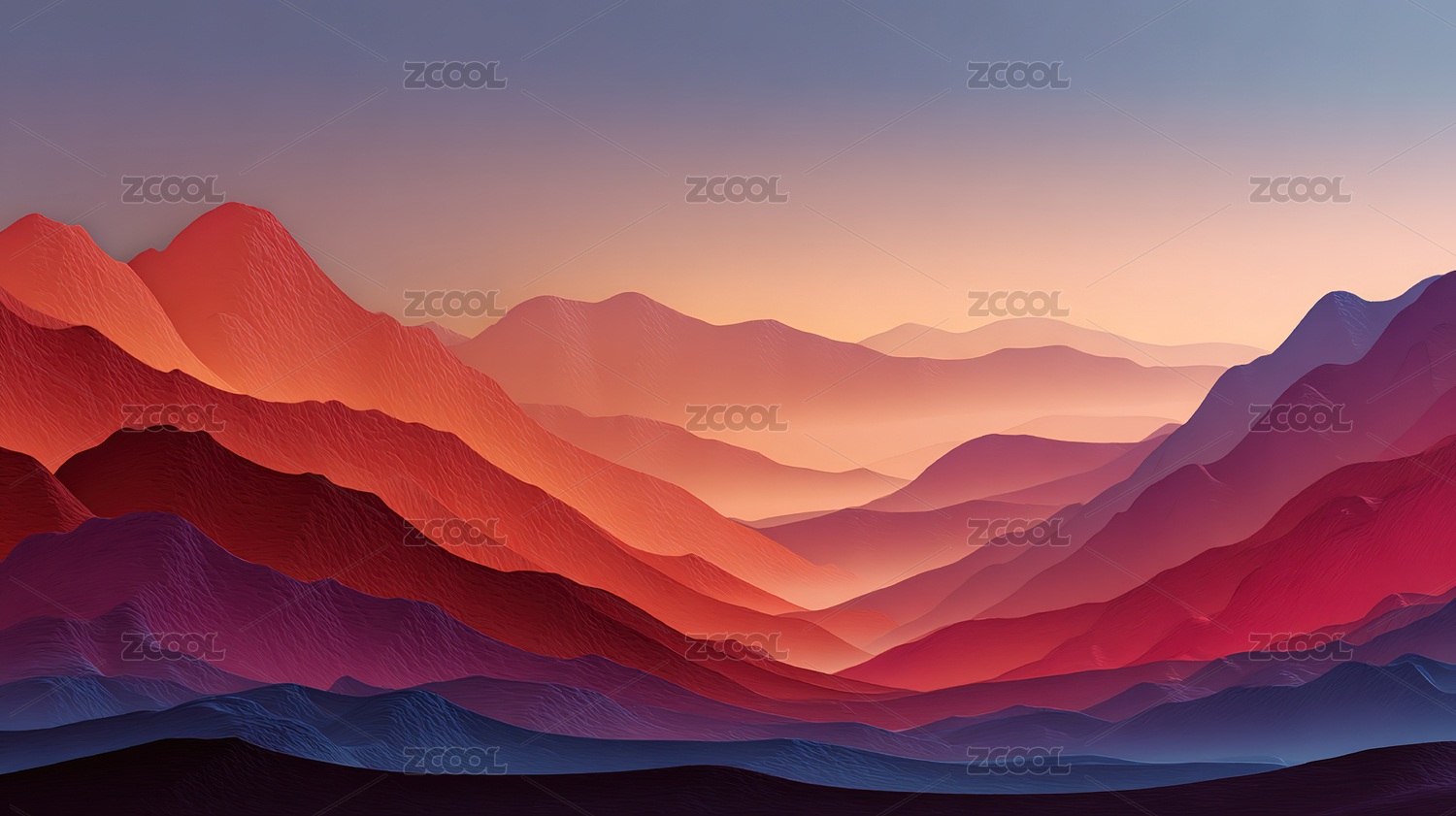 抽象水彩山脉,金色线条点缀,渐变色彩