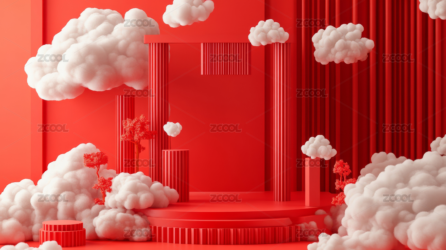 展览,无人,产品展台,AI数字艺术,创造力,三维图形,设计,抽象,人造空间,红色