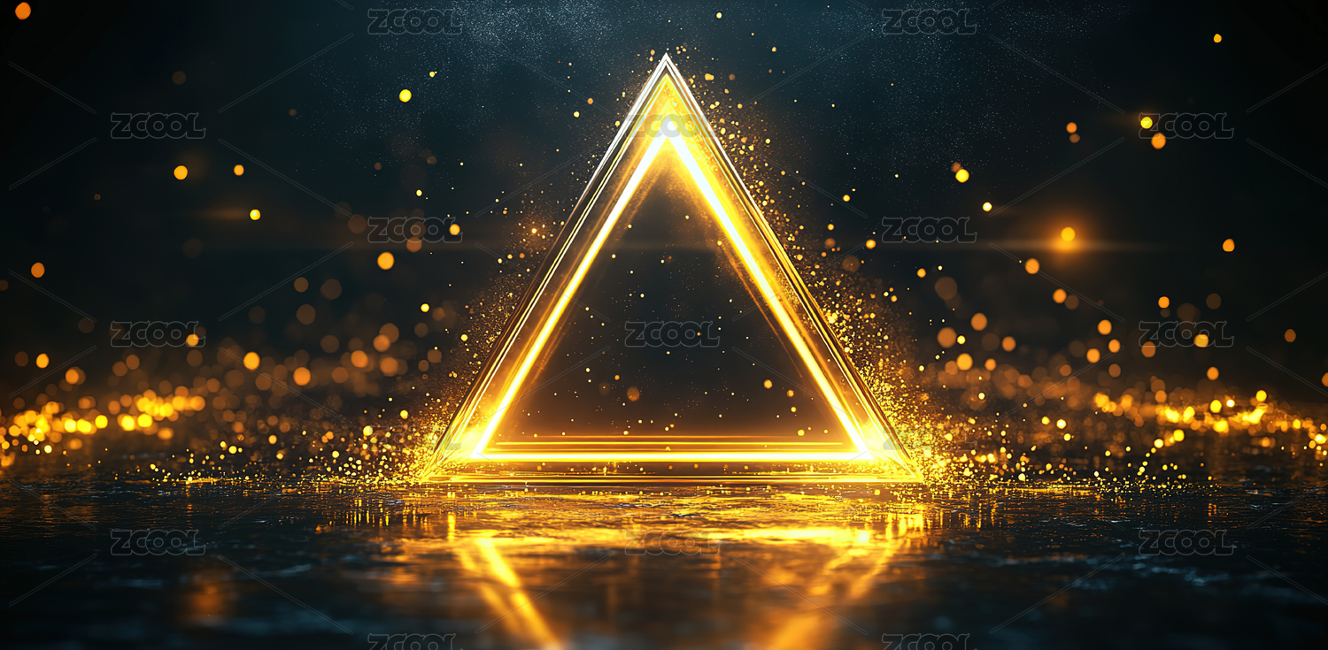 金色三角框架舞台与悬浮光球的奢华展示场景