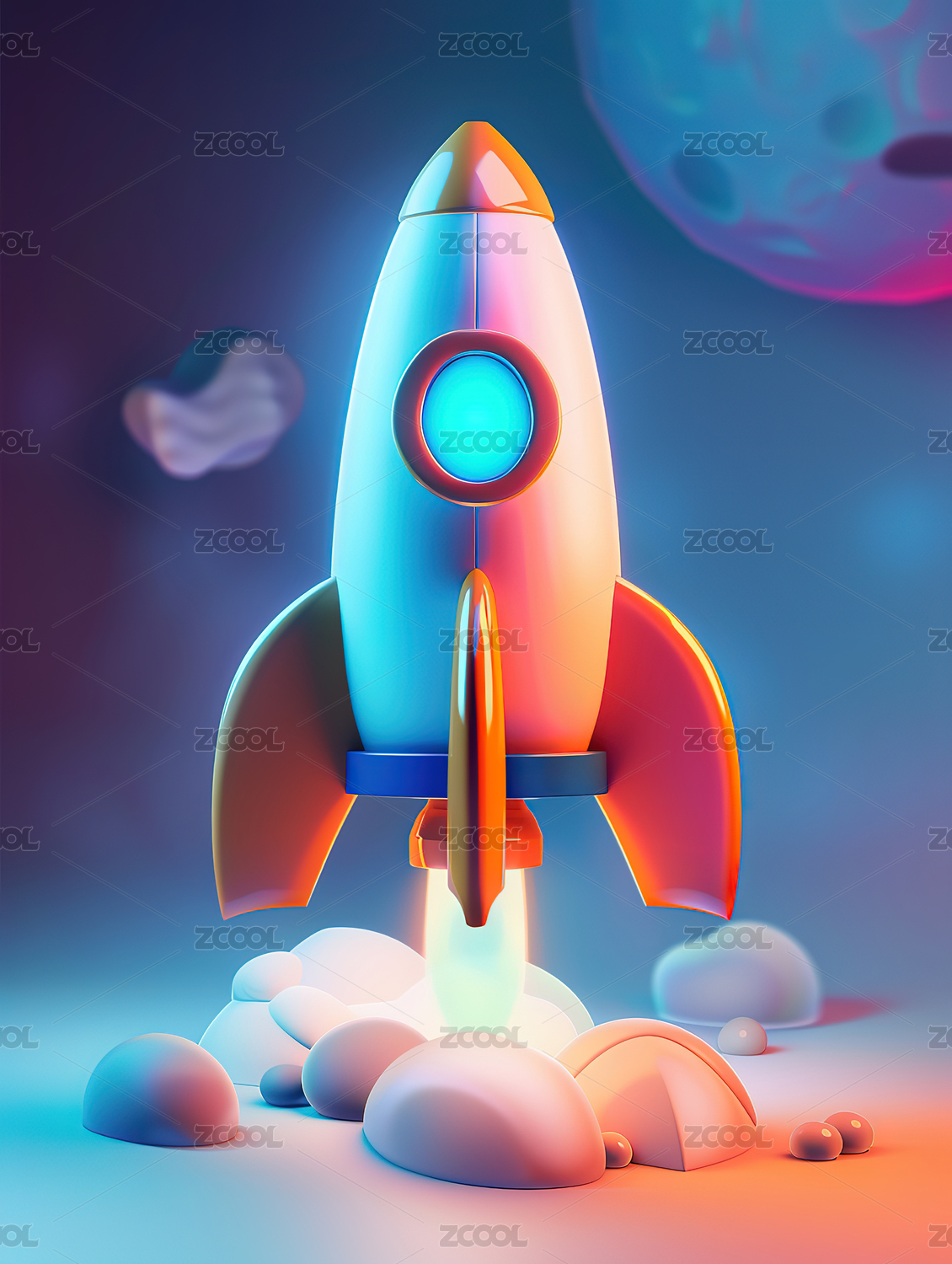 世界航天日火箭发射宇宙飞船三维渲染插图