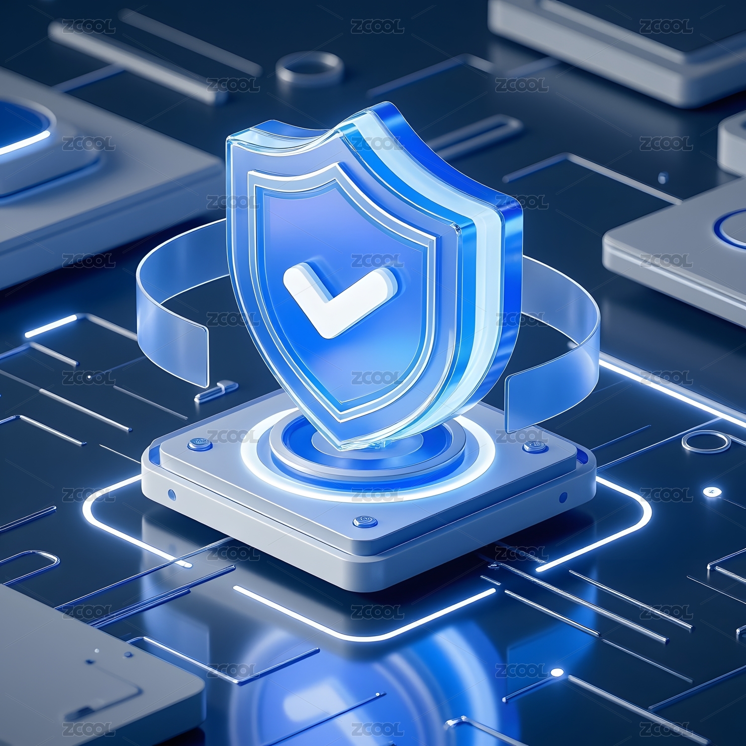 3D防火墙盾牌网络安全科技玻璃材质场景