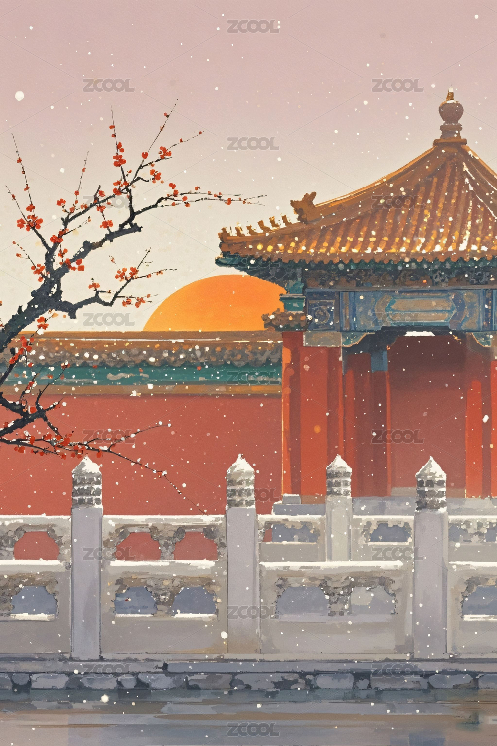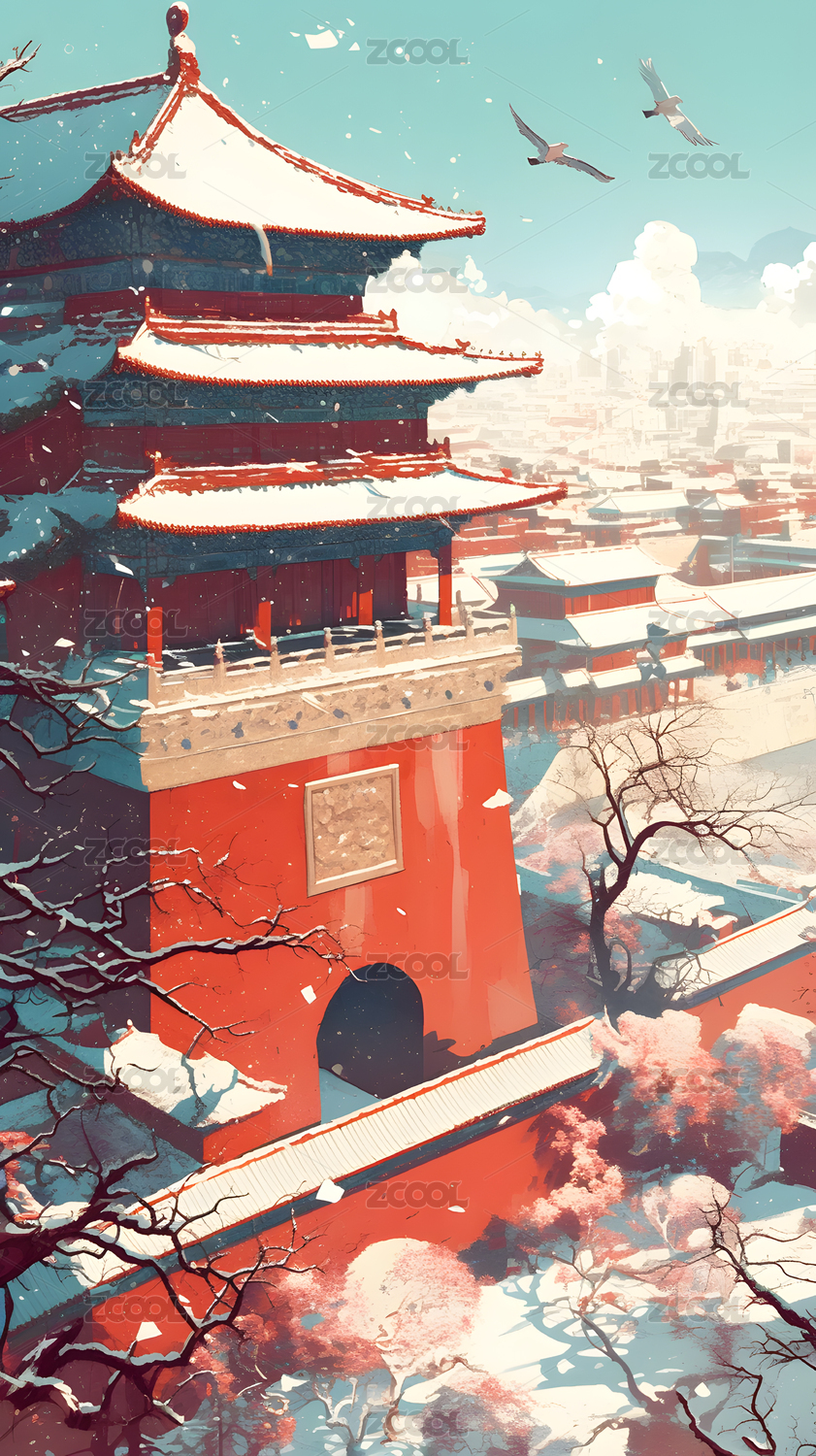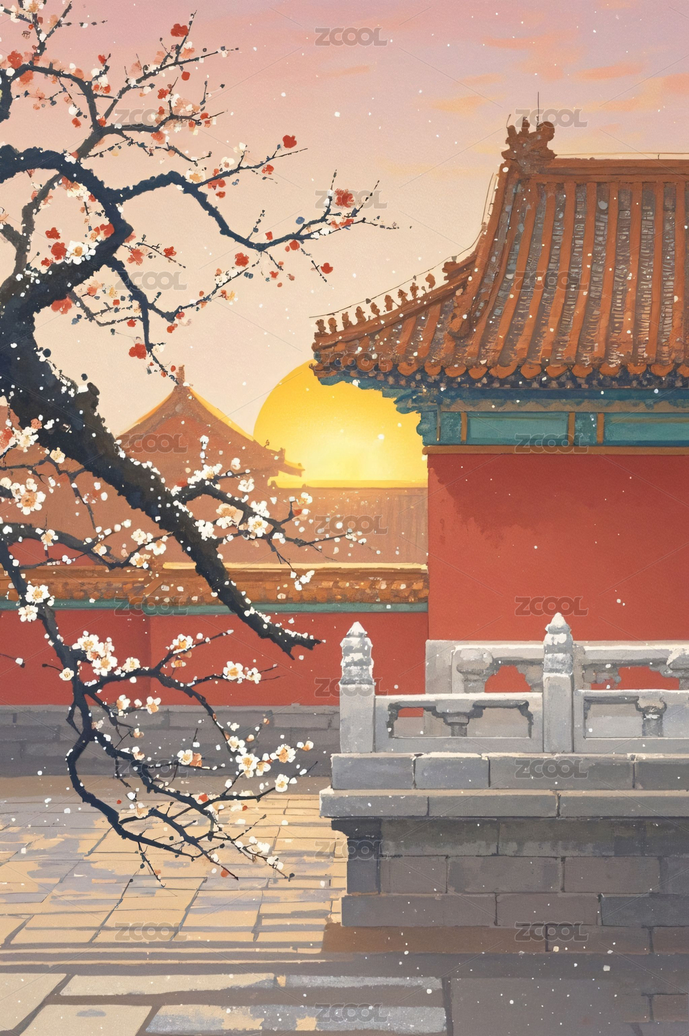 插画,背景,壁纸,艺术,绘画,AI数字艺术,AIGC,风景,自然,古建筑