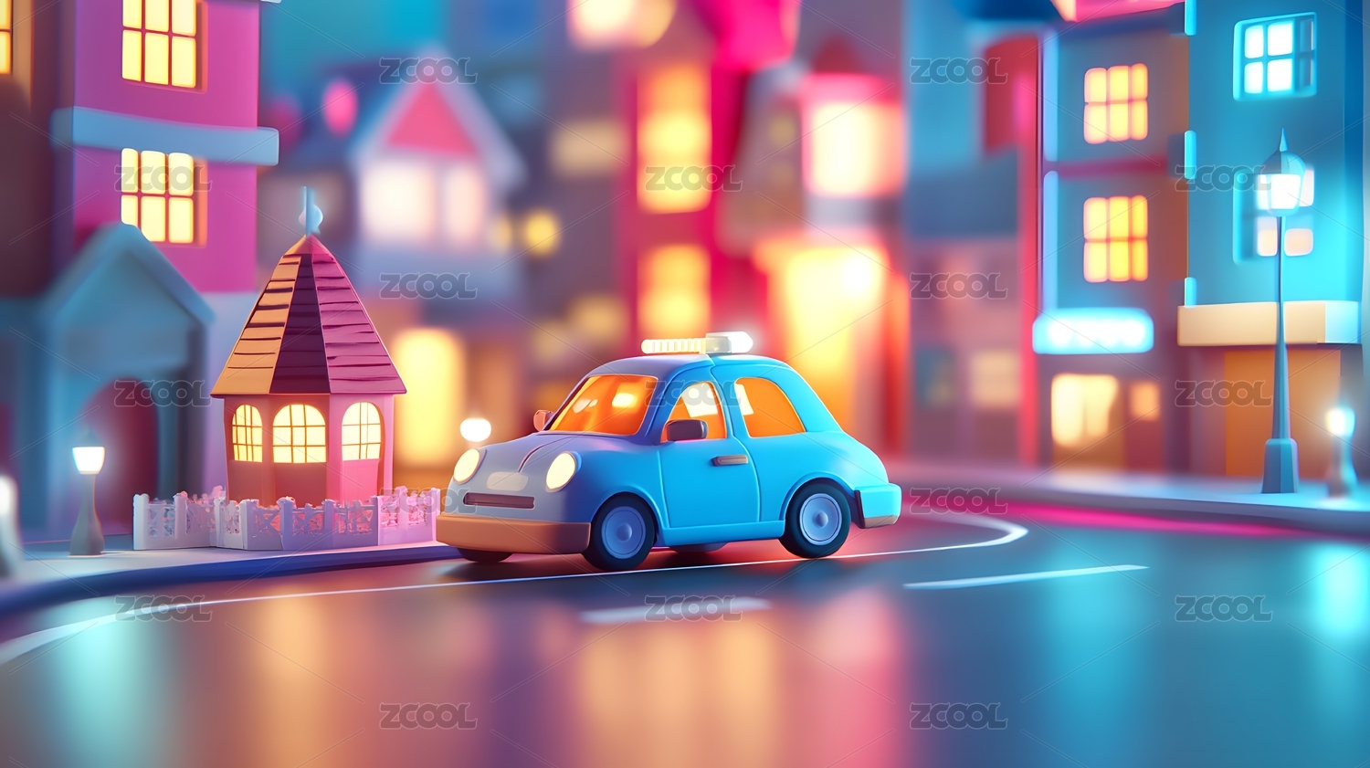 背景,卡通汽车,安全的,汽车,设计,夜晚,舒服,微缩城市景观,宁静,街道