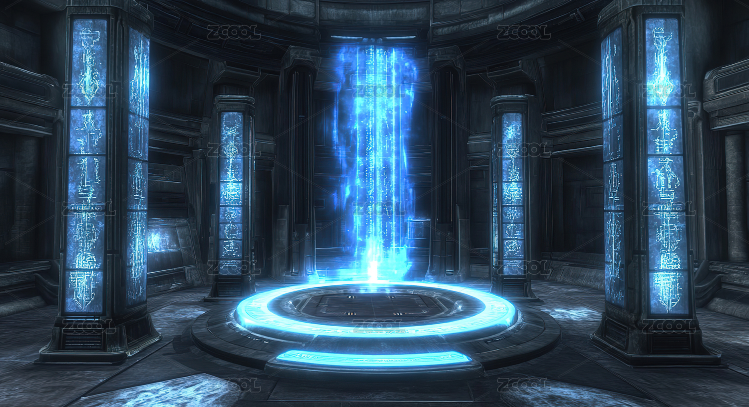 抽象霓虹灯矩阵科技感舞台赛博朋克3D插图