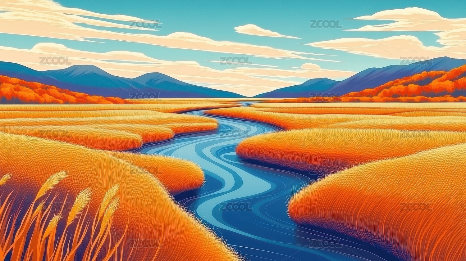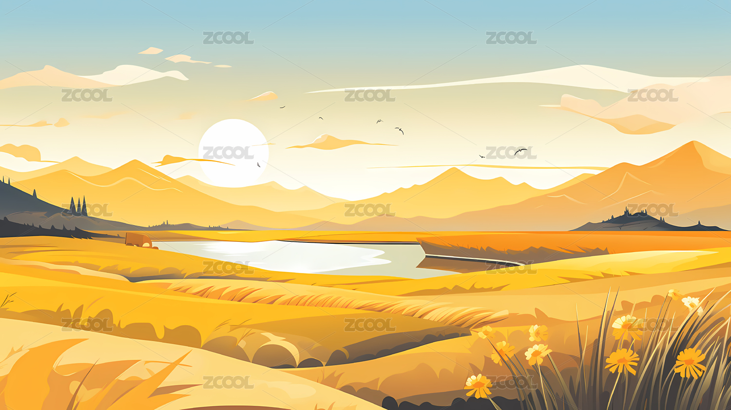 插画,大米,稻谷,稻穗,稻田,丰收,谷物,农田,田地,乡村