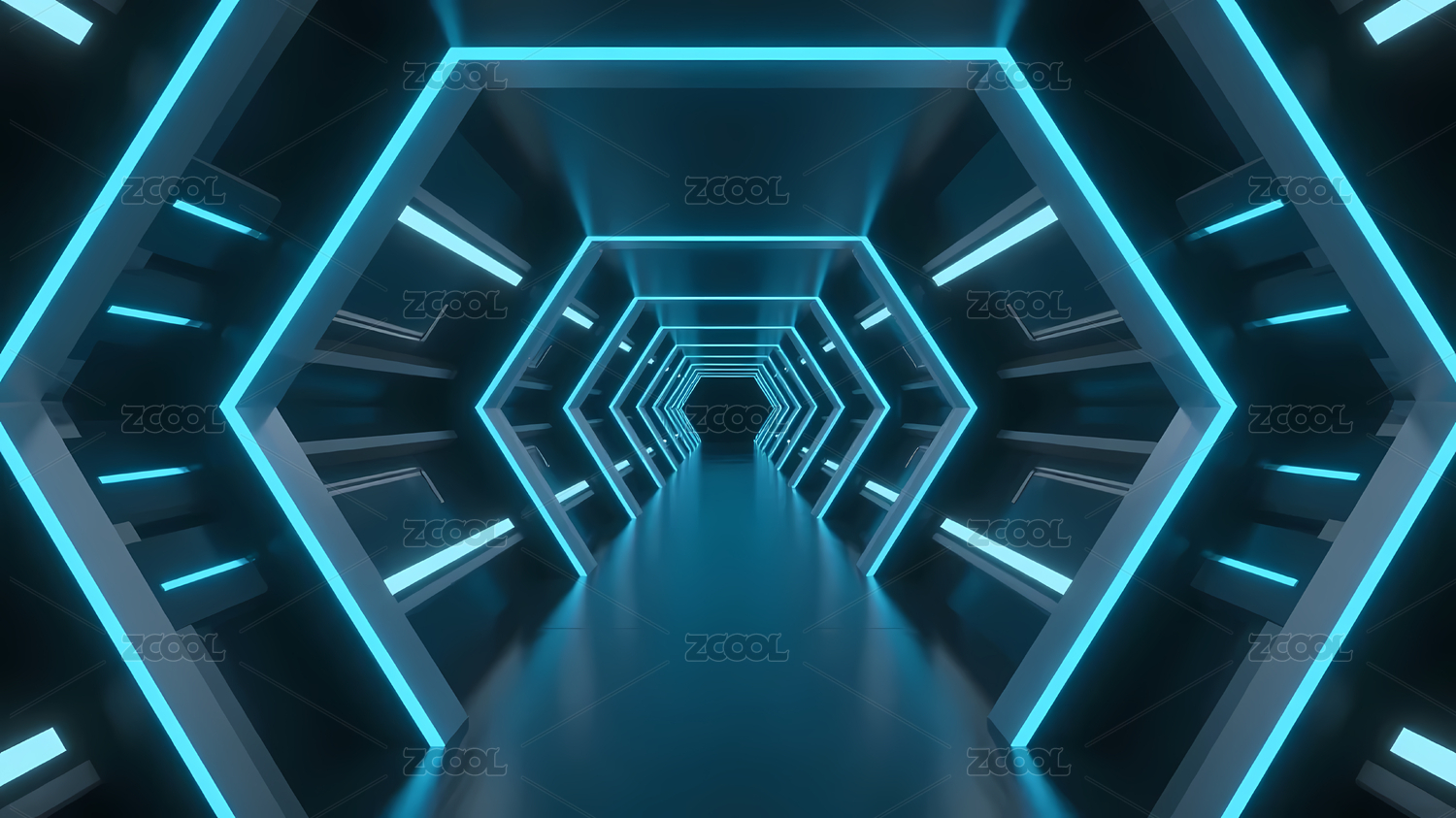 有发光线条条形灯组成的几何形状科技感通道隧道背景素材