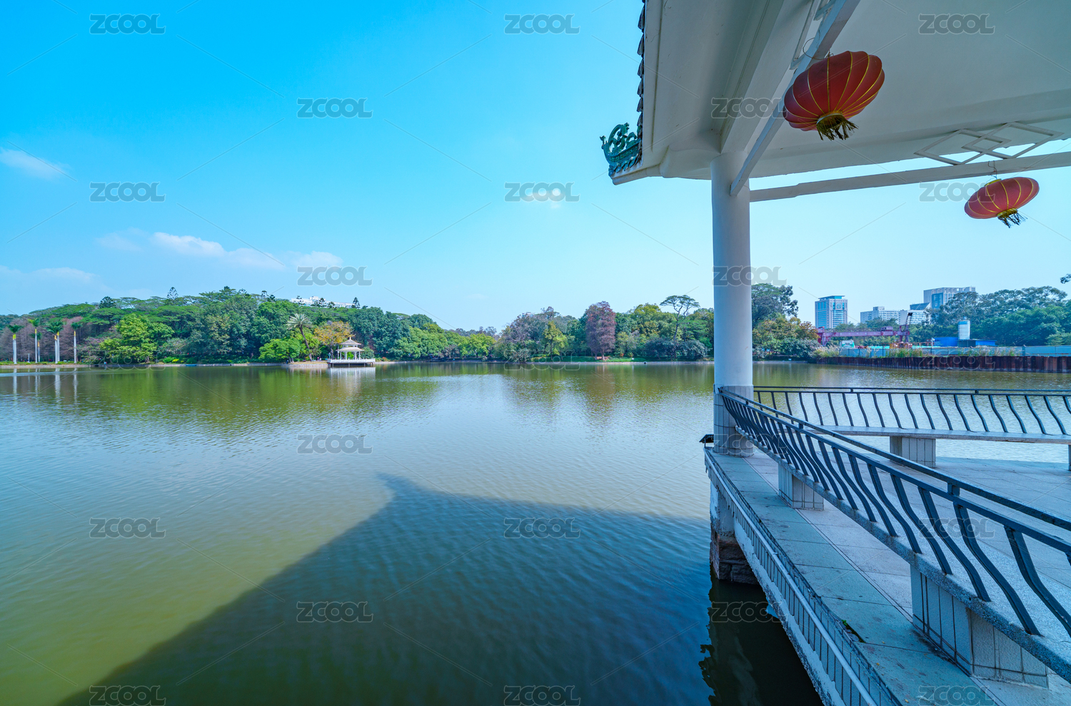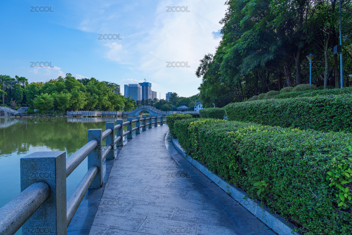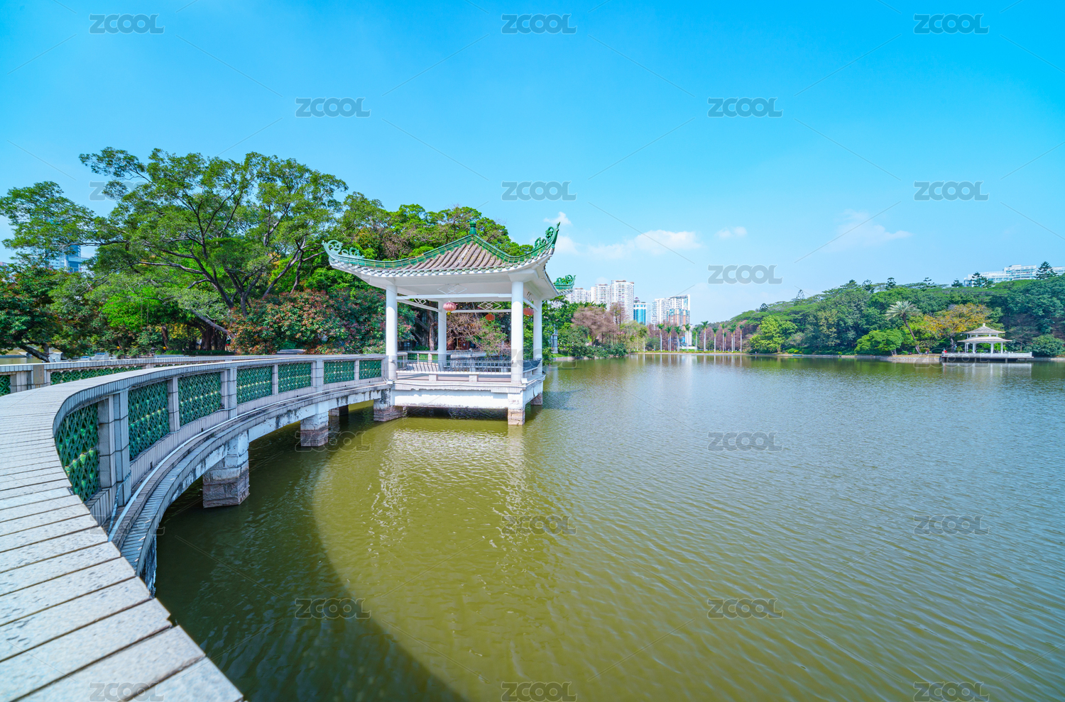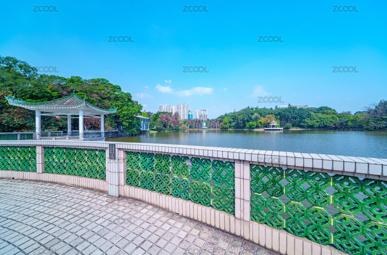 南宁狮山公园湖泊树林园林景观与滨湖步道
