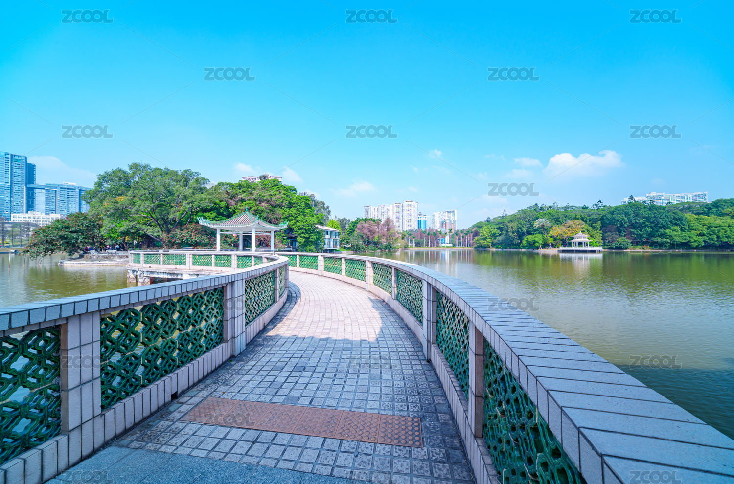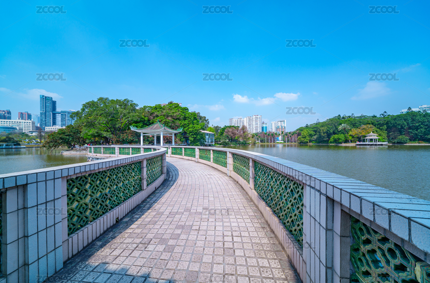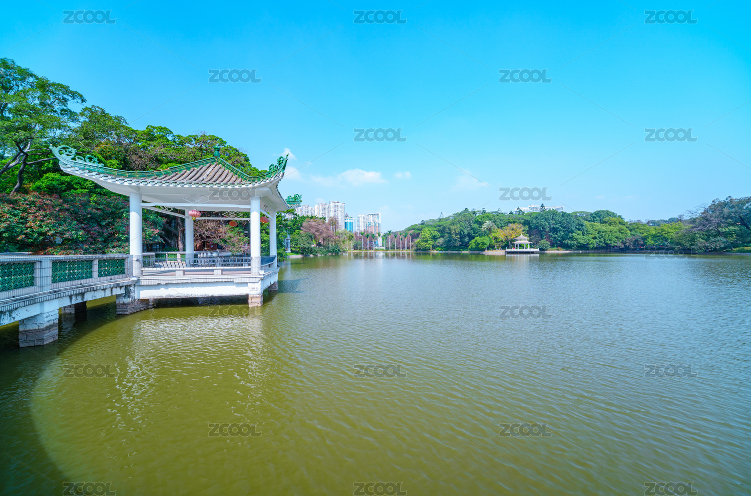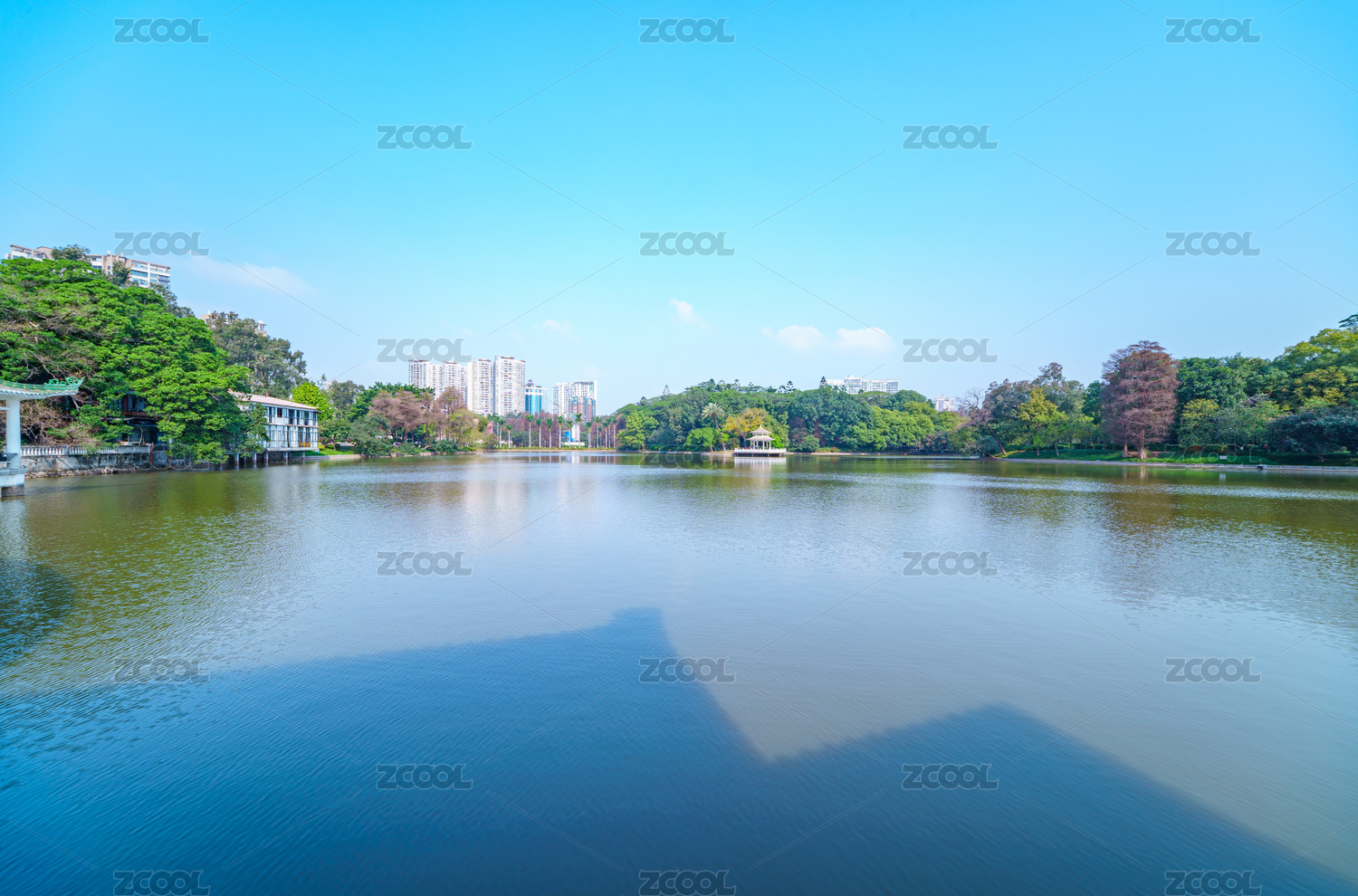 南宁狮山公园湖泊树林园林景观与滨湖步道