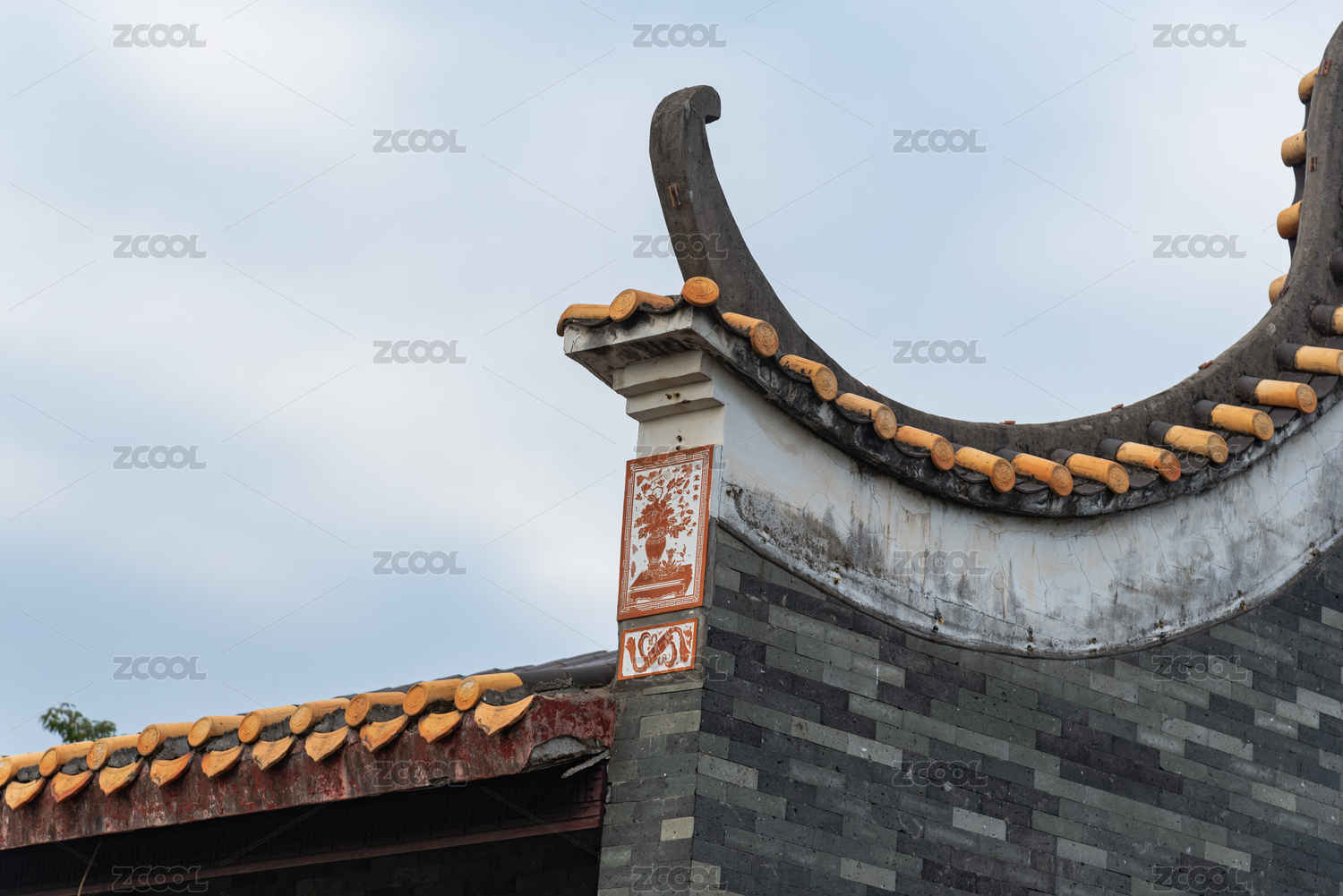 岭南建筑祠堂古建筑屋顶锅耳墙